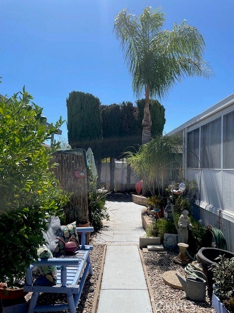 Discover charming Poway living in this well-kept 2 bedroom, 1-bath home ideally located on the Family-side of Poinsettia Mobile home Park. Residence is just steps away from Old Poway Park, the Farmer's market, and local shops. This light and inviting residence offers over 500 sq. ft. of interior living space, plus an additional 224 sq. ft. sunroom-perfect as a cozy lounge, home office, workout area, or creative studio. Inside you'll find an efficient floor plan with comfortable bedrooms, a bright kitchen and a welcoming living area. Large windows and the extended sunroom provide an airy feel and bring in abundant natural light. The outdoor space offers room for gardening or simply enjoying Poway's sunny climate. Community amenities include a Tot-lot, heated pool, jacuzzi and sauna. Clubhouse has a pool table, computers and activities for residence to enjoy. Situated in a friendly community with easy freeway access, recreation opportunities, and top-rated Poway Unified schools, this property blends convenience, comfort and charm. A wonderful opportunity to enjoy affordable living in one of San Diego's most desirable neighborhoods. Buyer must be approved by Park Management. Utilities are sub-metered and based on individual usage.
