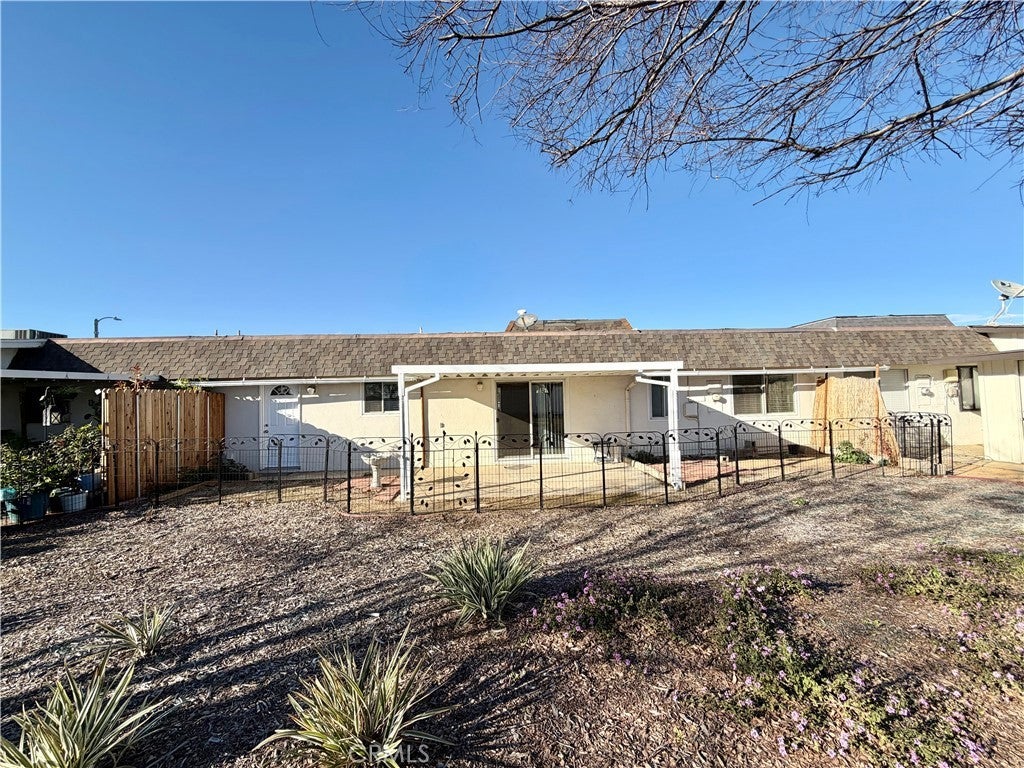 55+ Community-As you arrive, you’ll appreciate the inviting curb appeal highlighted by low-maintenance landscaping and a charming front gate. Step inside to a bright and welcoming living room that offers a comfortable space to relax or entertain. The UPDATED kitchen is thoughtfully designed and features modern finishes, ample cabinetry, and convenient access to the laundry area, garage, and backyard making everyday living effortless. Down the hallway, you’ll find a well-sized secondary bedroom and a full hallway bathroom, perfect for guests or additional household members. The primary bedroom is tucked away at the end of the hall, offering added privacy and featuring its own attached full bathroom. Sliding glass doors from the main living area lead to a spacious backyard with an open layout and a covered patio that is ideal for outdoor dining or relaxing. The attached garage provides direct access to the home and includes an additional room that can be used for storage, a workshop, or hobby space. This home offers a functional layout, modern updates, and indoor-outdoor living. Schedule your showing today this opportunity won’t last!
