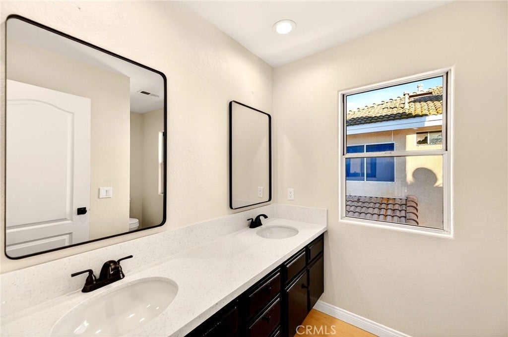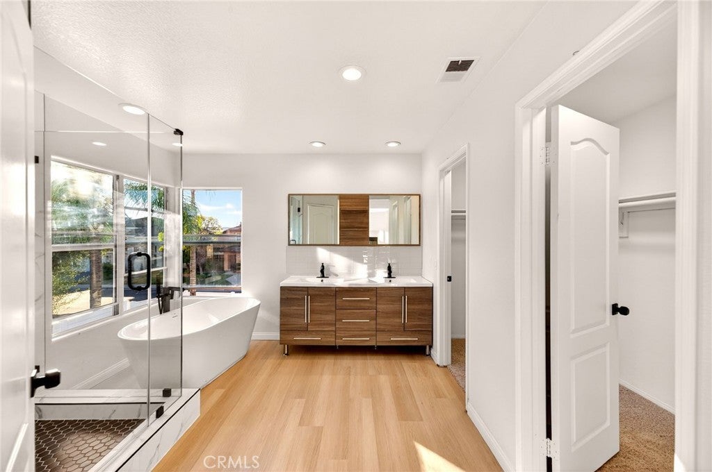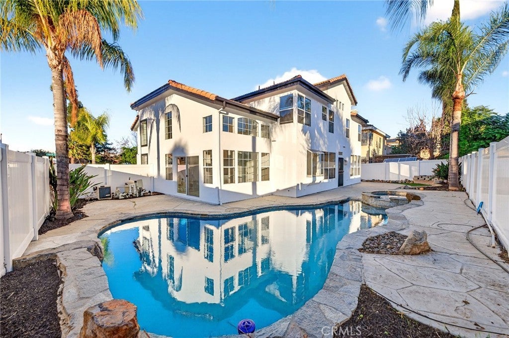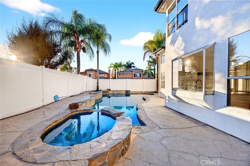 No FHA offers until after February 11, 2026. Located in central Murrieta, this beautifully updated 4-bedroom, 3-bath home offers 2,584 square feet of living space and features a pool, spa, and a highly desirable main-floor bedroom with full bath. Situated on a quiet cul-de-sac corner lot, the property has no HOA and benefits from a lower tax rate. The home has undergone a complete refresh, beginning with the stunning pool and spa featuring a brand-new mini pebble finish. The interior and exterior have been freshly painted, and new luxury vinyl flooring runs throughout. A vaulted, expansive entry welcomes you with formal living and dining areas, leading into an oversized kitchen and open great room—ideal for entertaining. The fully updated kitchen is both beautiful and functional, offering generous counter space, abundant storage, and a large center island perfect for gatherings. The main-floor bedroom with full bath provides excellent flexibility, ideal for guests, a home office, or gym. Upstairs, you’ll find two additional bedrooms with an updated shared bath, along with a spacious primary suite featuring a private retreat, cozy fireplace, and a luxurious en-suite bathroom with a separate soaking tub and glass-enclosed shower.
