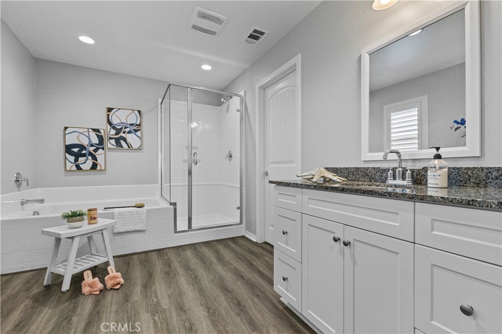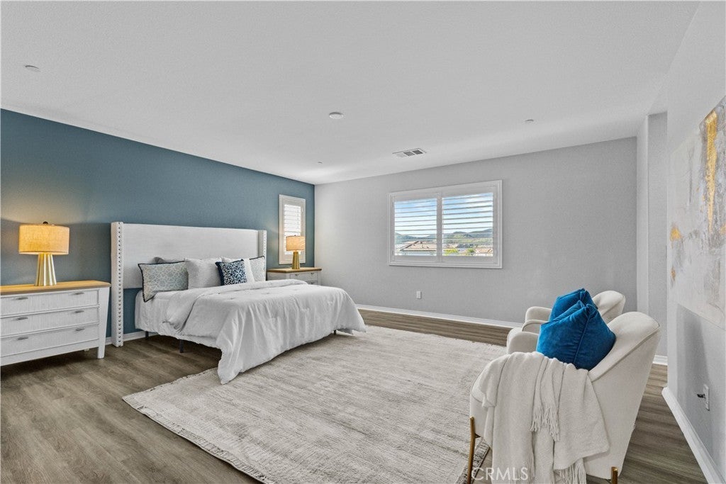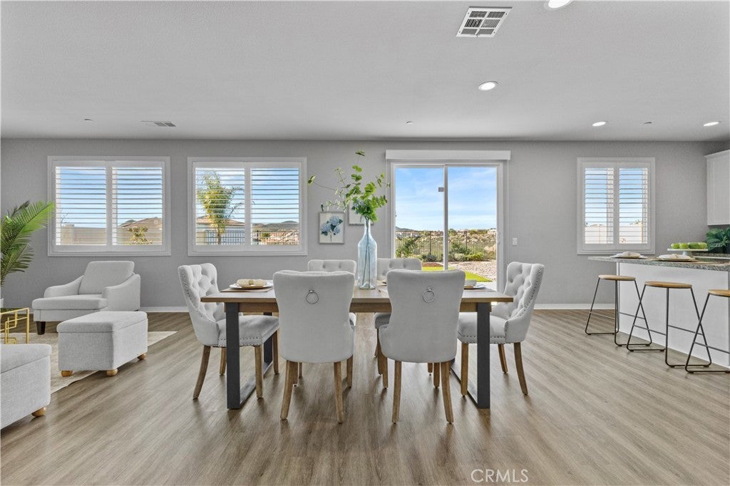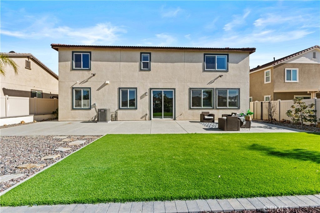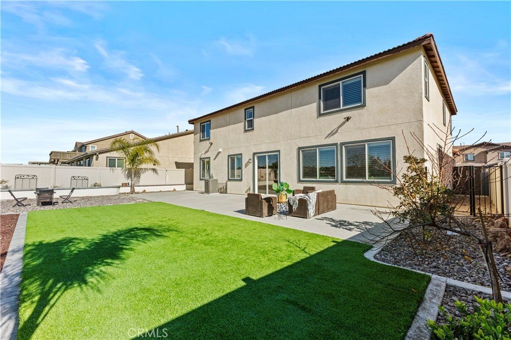 Welcome to this beautifully upgraded home located on a premium lot in the desirable community of Murrieta. Thoughtfully enhanced with both style and functionality, this residence features plantation shutters throughout and luxury vinyl plank flooring replaced approximately two years ago, including the staircase, creating a cohesive and modern look across the entire home. Designed for today’s connected lifestyle, this is the only home in the neighborhood with CAT 5 wiring run to multiple rooms—ideal for remote work, gaming, or smart-home living. Additional upgrades include owned, paid-off solar, a tankless water heater, a QuietCool whole-house fan system for energy-efficient comfort, and well-designed storage racks in the garage, maximizing organization and usable space. The outdoor spaces are equally impressive, with over $80,000 invested in professional landscaping and hardscaping. The front and backyard showcase stamped concrete, a spacious 15’ x 40’ area of high-end artificial turf, mature fruit trees including plum, peach, apple, lemon, and orange, and a dedicated side dog run with a wrought iron gate. The backyard is also equipped with an electrical run to the rear fence, featuring three separate electrical stations—ideal for entertaining, outdoor lighting, or future enhancements. Adding to its appeal, the home sits on an oversized, view lot for which the seller paid a significant premium, offering extra space, privacy, and scenic surroundings that truly set this property apart. This is a rare opportunity to own a meticulously maintained home with exceptional upgrades, a premium lot, and thoughtful details throughout—an ideal blend of comfort, quality, and lifestyle. Don't wait as this home won't last long!