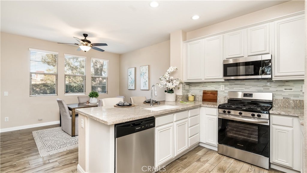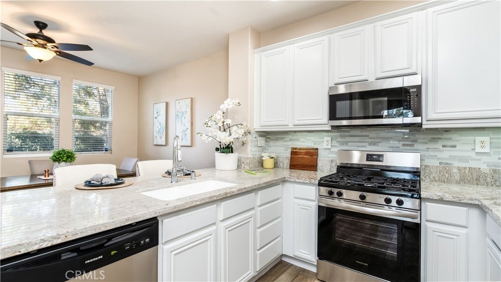 Located in one of Murrieta’s most sought-after neighborhoods, this beautifully updated home offers both comfort and convenience. With quick access to the 15 and 215 freeways, commuting is effortless. The home has just been refreshed with brand-new flooring, newly painted cabinets in the kitchen and bathrooms, sleek quartz countertops in the kitchen, and new stainless steel appliances, creating a bright, modern space ideal for everyday living and entertaining. Unlike interior units, this home enjoys a prime corner location near the shopping center, offering a more open setting. From the upstairs, you’ll appreciate pleasant views overlooking the high school across the street, rather than being surrounded by neighboring condos. Set within a welcoming, family-oriented community, residents enjoy access to a community pool, park, and recreational amenities. Shopping, dining, and entertainment are just minutes away, including Costco and nearby shopping centers. This move-in-ready home is an exceptional value and won’t last long.
