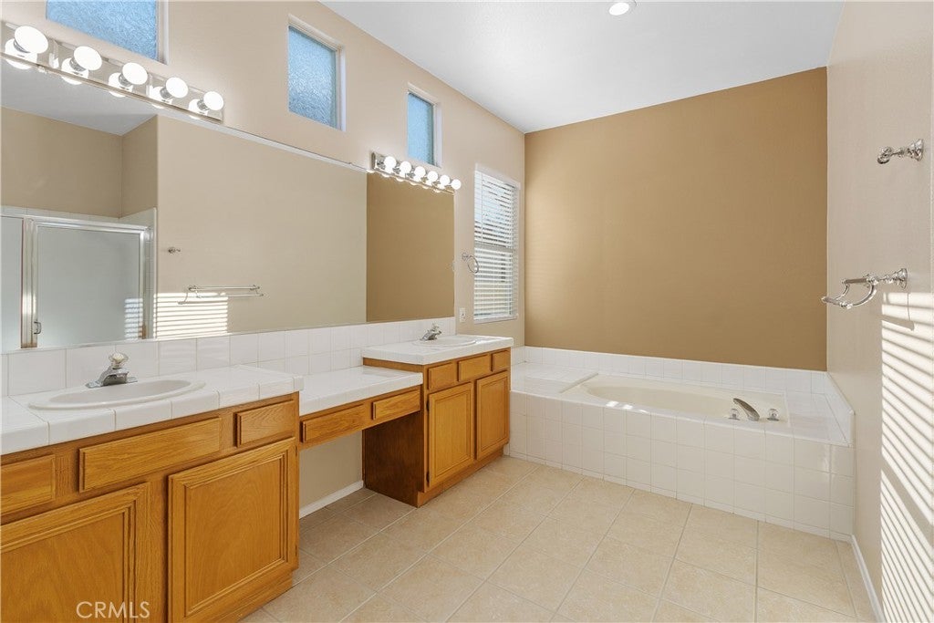 West Murrieta - Copper Canyon - Single Level home walking distance to Cole Canyon Elementary School. This Beautiful home offers tranquil Views of the Park, City, Hills and School. It offers 3 Bedrooms, 2 1/2 Bathrooms, 2311 Sqft with a Open Floor plan and High Ceilings throughout. The Kitchen has Granite Counter Tops, Separate Island, Dining Nook area, Walk-in Pantry, Refrigerator, Backyard Entry, and joins the Family Room area that shares a Double-sided Fireplace with the Formal Living Room. The Private Primary Suite has a separate Patio Entry and includes Dual Walk-in Closets, Dual Sinks in Bathroom with a large Tub and Shower. The 2nd Bedroom is large and has a Walk-in Closet and shares a full Bathroom with 3rd Bedroom. It also has a separate Formal Dining Room with Crown moldings, 3 Car Attached Garage, Separate Laundry Room, Dual Patio Covers, Additional Gated Side Yard, Vinyl Fencing on sides. Newer Air-conditioning & Heating System, New Blinds throughout, Laminate & Tile Flooring. New Interior Paint, Lots of Cabinets, Beautifully Landscaped, Located in the Murrieta School District, Centered in the neighborhood Trail Systems and Parks. Close to the Santa Rosa Platea, Lots of shopping and Intestate 15. No HOA and Low Taxes.