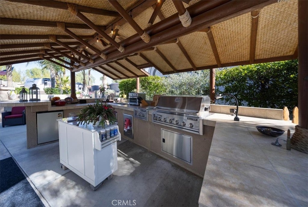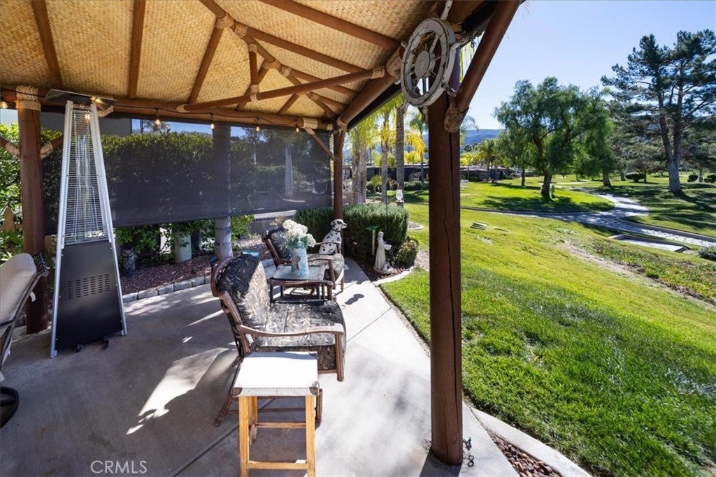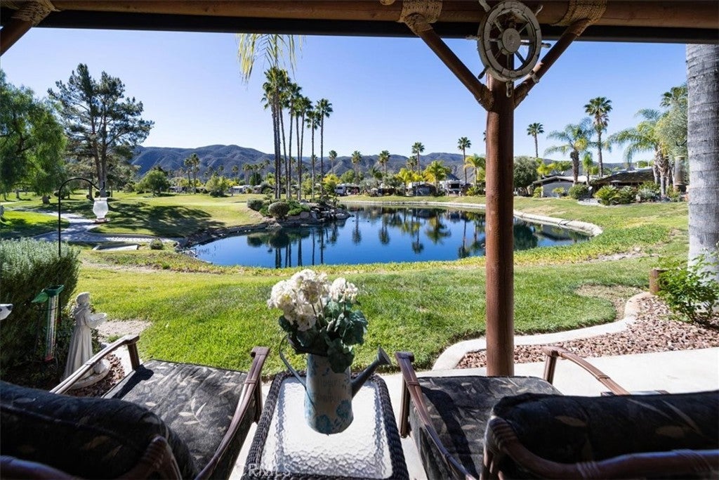 Serenity Now!!! One of the Best Views in the Park with a Waterfront Waterfall View and the 10th Green with Mountains in the Backdrop. This is what you Need to Really Relax and Decompress for the Weekends. You get three Areas of Enjoyment on this Lot. Enjoy the Fire Place - Living Area with lots of Counter space andStorage for Entertaining. The Kitchen Area with Built-In BBQ, Top Burners, Refrigerator, Freezer, Sink and Convection Oven with so much Counter Space. Then there is the Huge Family Room to Soak up the Water Views and Watching the Golfers on the 10th Hole Green. Washer & Dryer Hookups behind the RV. Included in Rancho California RV Resort is a 14 hole Executive Golf Course free for owners, 5 Pools and Jacuzzi areas, Tennis Courts, 14 Pickle Ball Courts, Laundry Rooms, Dog Park, Horse Shoe Lawn, Club House, Hiking Trails, and Restaurant, and convenience store all inside Gated Community that is Guarded 24/7. You can live here or rent your space. Peace and quiet serenity all just 25 minutes from Temecula Wine Country. No age restrictions. Come on over and check this hidden gem of a place out. Fifth Wheel 2024 Solitude 376RD and Golf Cart available as a package deal!