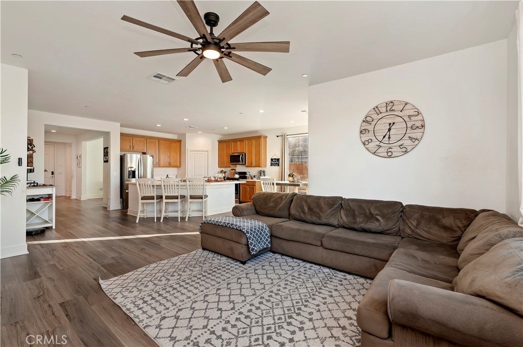 New Listing Alert!!! This Stunning single-story home with great curb appeal in the highly sought-after Spencer’s Crossing community, located within one of Riverside County’s top-rated school districts. This bright, open-concept floor plan features beautiful flooring and upgraded baseboards throughout, spacious bedrooms with ceiling fans, and a flexible den ideal for a home office or optional bedroom. The chef’s kitchen offers a large island, rich cabinetry, walk-in pantry, five-burner stove, and stainless steel appliances, opening to inviting living and dining spaces perfect for entertaining and everyday living. The private primary suite is filled with natural light and feels like a true retreat. The primary bathroom feels like a private spa, featuring dual vanities, an oversized mirror, a deep soaking tub, a walk-in shower, and a spacious walk-in wardrobe with custom built-ins. Enjoy outdoor living under the covered patio, plus a side yard ideal for a dog run. Additional highlights include a tankless water heater, smart thermostat, pre-wired Wi-Fi extender, and pre-wired for security cameras. Ideally located near freeway access, scenic hiking and mountain biking trails, and just minutes from Temecula Wine Country, top-rated restaurants, and premier shopping. With resort-style amenities including pools, parks, and trails, this exceptional home is truly a must-see.