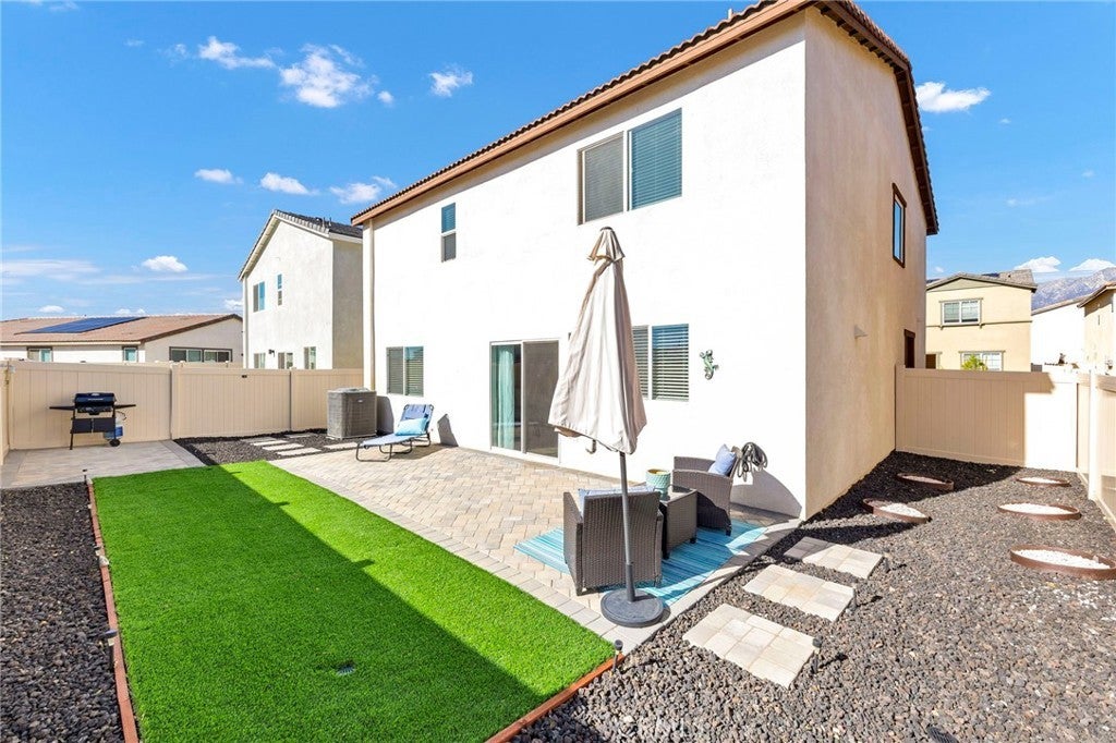 Welcome to 1489 Goldenbrush Way, a newly built home located in the Master Planned Community of Atwell. Built in 2024, this beautifully maintained, model-like property offers: 4 Bedrooms, 3 Bathrooms and 2,024 Sq. Ft. of modern living space! The long, open floor plan downstairs provides a seamless flow between the living, dining, and kitchen areas, ideal for entertaining and everyday living. Upstairs is a spacious loft which can be used as a home office, school-room, play-room, gaming area, or additional living space. The low-maintenance and fully landscape backyard features a patio-paver seating area, artificial turf and decorative side yard space. The home also comes with an oversized AC condenser and leased solar system, helping reduce energy costs! This home is located in the desirable Master Planned Community known as Atwell. Life at Atwell means access to incredible amenities designed for recreation, connection, and relaxation. The community when built out will feature five different recreation centers, each with its own mix of amenities. Every center will include a pool, tot lot, and outdoor dining spaces, creating the perfect gathering place for neighbors and friends. Walking trails and sports parks provide even more opportunities to enjoy the outdoors. Living at Atwell means you’re within easy reach of the natural beauty of Joshua Tree National Park, Idyllwild, Big Bear, Palm Springs, and Redlands, ideal for day trips, hikes, or a night out on the town. Whether you’re soaking up the sun by the pool, enjoying a picnic, or watching the kids play, Atwell offers the perfect backdrop for lasting memories. This newly built home combines comfort, functionality, and an exceptional community lifestyle, at an affordable price! There is no need to wait for New Construction as this home is 100% Turn-Key and Move-In Ready!