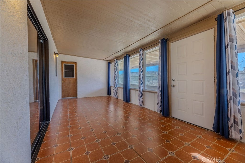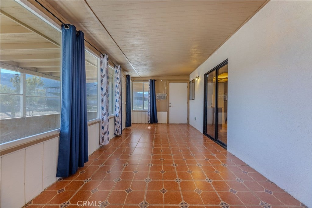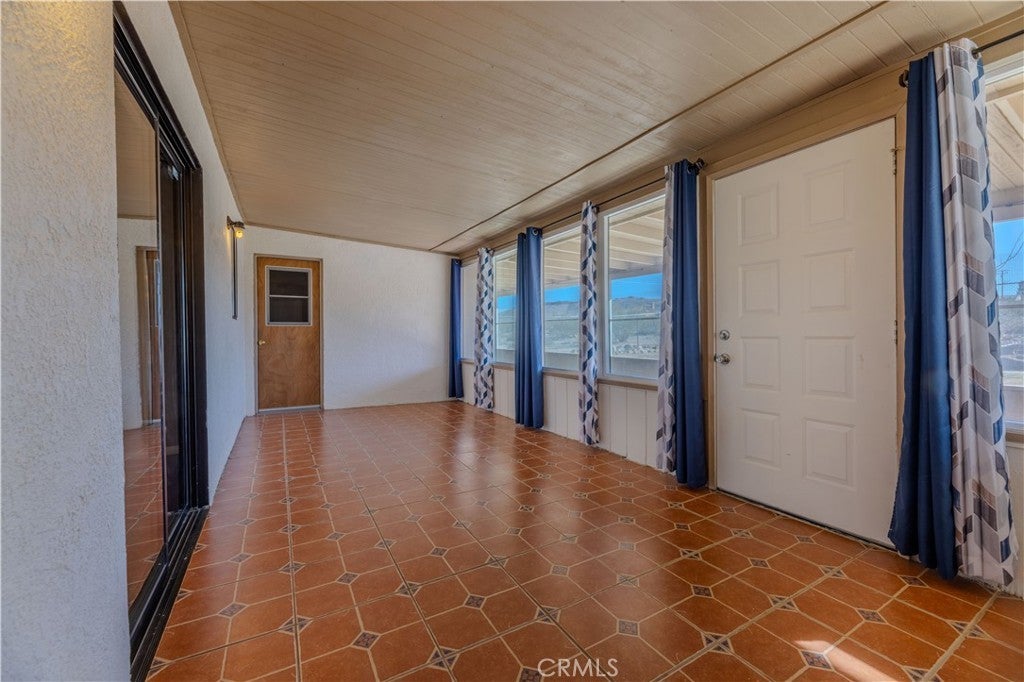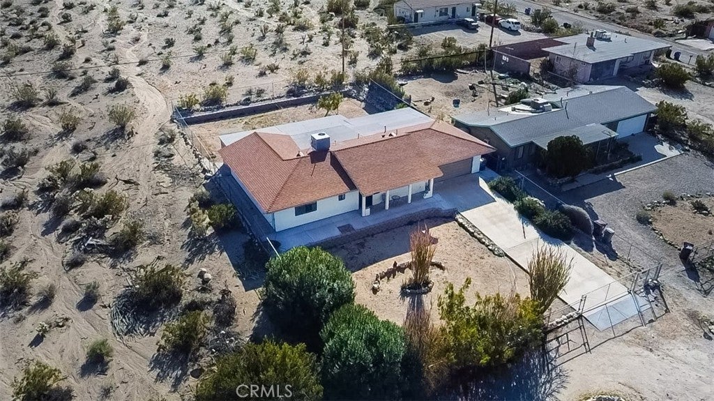 This house is turn key ready and in a premium location with an 11,250 square foot lot. Just 3 miles from the entrance of Joshua Tree National Park. This home sits high up with commanding views of the valley below. Interior is tiled making for easy maintenance and pet friendly. 3 bedrooms, 2 bathrooms, and an enclosed sun room with it's own A.C. and it's not included in the square footage. Back yard features a large covered patio with views of the mountains, fenced in yard, and a second screened in patio perfect for pets. Central air conditioning and heating, dual pane windows, and window coverings. Attached 2 car garage with laundry hook ups. Front yard is fully fenced with lots of cement and a covered front porch too. Home is perfect for first time buyer, vacation home, or Air B & B , or full time rental.
