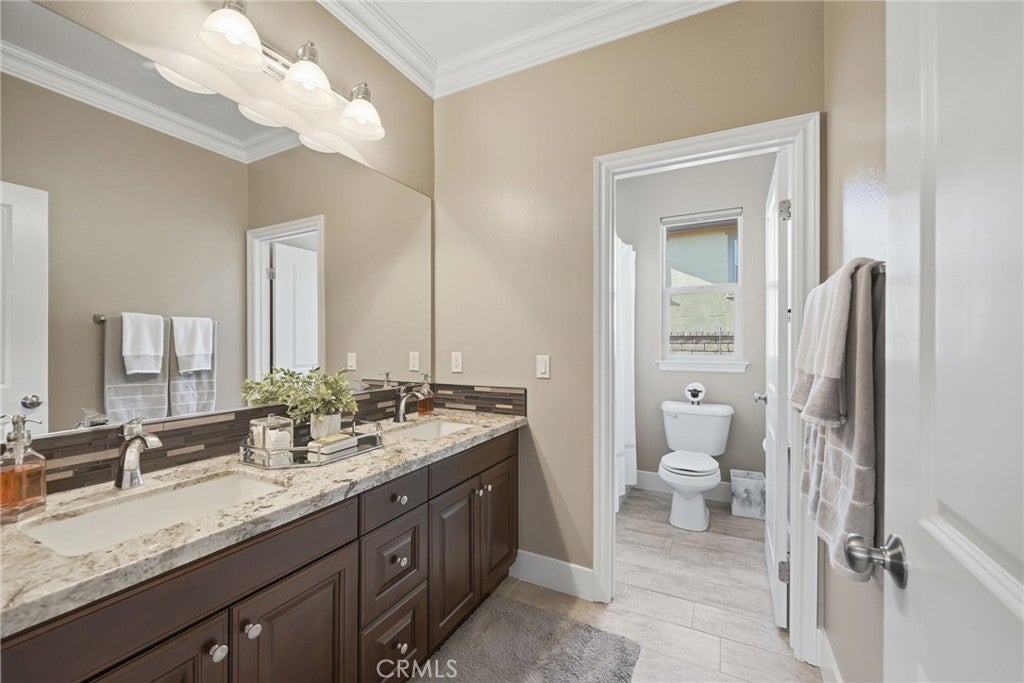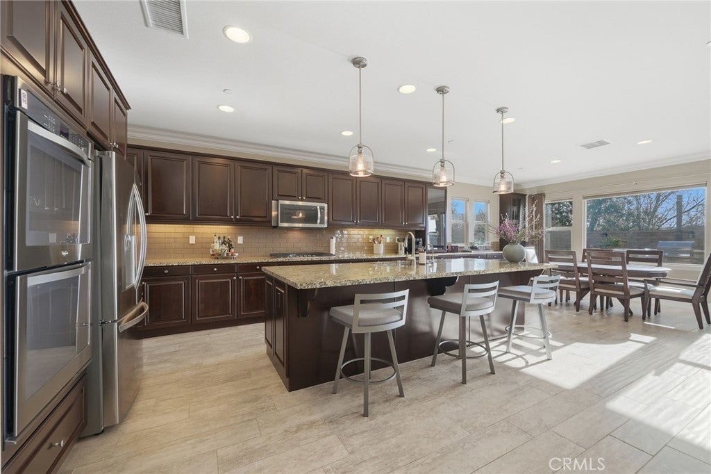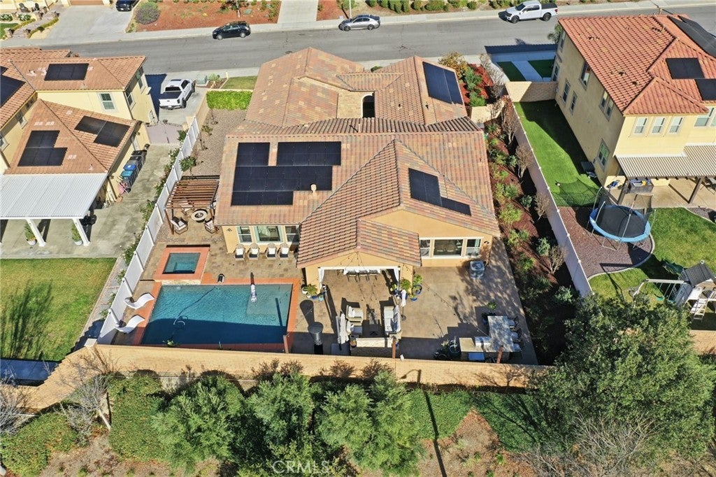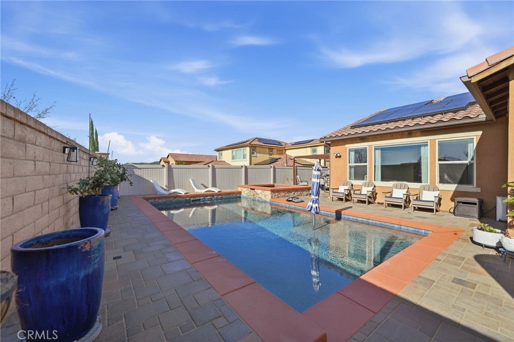 IMMACULATE SINGLE STORY, POOL HOME W/ FULLY PAID SOLAR!! Welcome to this highly upgraded single-story 3-bedroom + den/office home, thoughtfully designed for both everyday living and effortless entertaining. From the moment you step inside, you’re greeted by upgraded tile flooring and crown molding throughout, creating a clean, seamless flow across the entire home. The spacious great room serves as the heart of the house and connects to the outdoors through the expansive sliding glass doors, flooding the space with natural light. The kitchen and living areas open to a covered California room, perfect for indoor-outdoor living year-round. The primary suite is your personal sanctuary - bright, peaceful, and perfectly positioned for privacy. Large windows and a ceiling fan enhance the serene atmosphere, while the en-suite bathroom invites you to slow down with a center soaking tub, dual vanities, and a spa-inspired walk-in shower serving as your own retreat at the end of the day. Step into your private backyard oasis featuring a sparkling pool and spa, low maintenance landscaping, built-in BBQ, generous side yard, and a stunning stone fire pit accent wall that anchors the space for cozy evenings and entertaining under the stars. This home is upgraded throughout and includes fully paid solar with three battery packs, a 3-car tandem garage with EV charger, and smart, energy-efficient features that offer both comfort and peace of mind. Located in the highly rated Temecula School District, just minutes from parks, shopping, and dining, with low HOA dues. This home is stylish, functional, and designed for modern California living - all it needs is YOU.