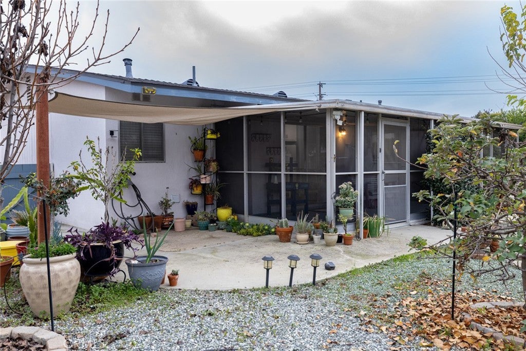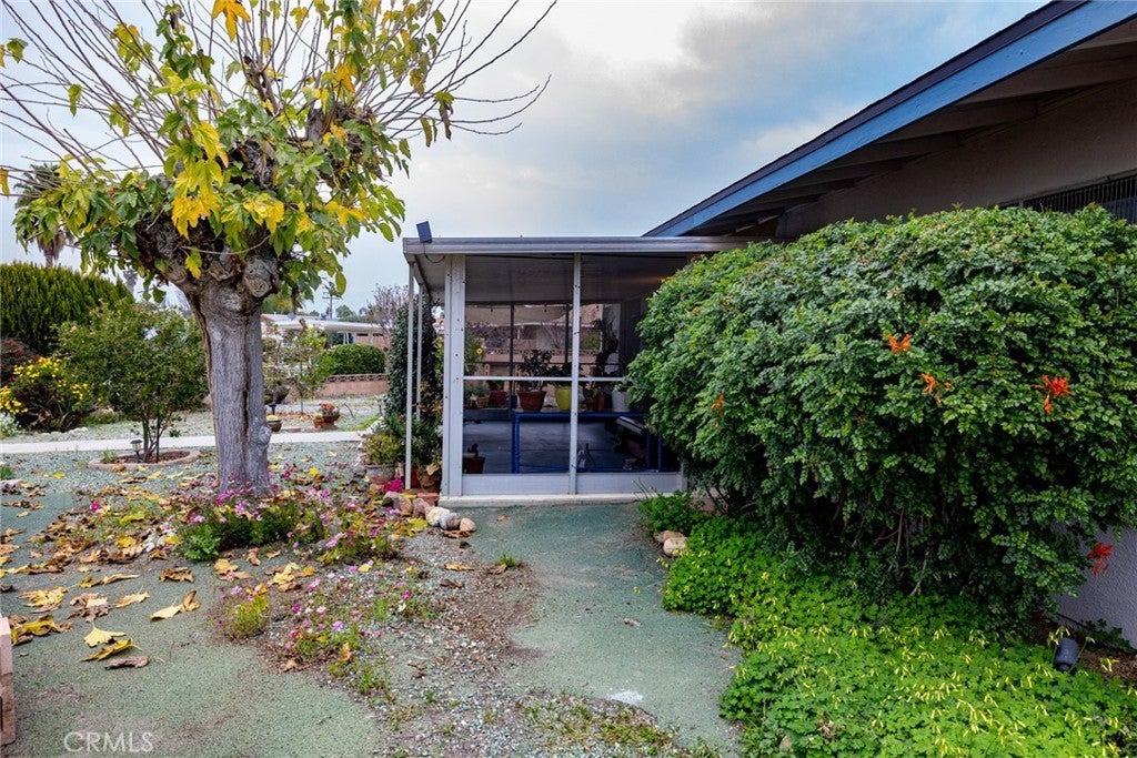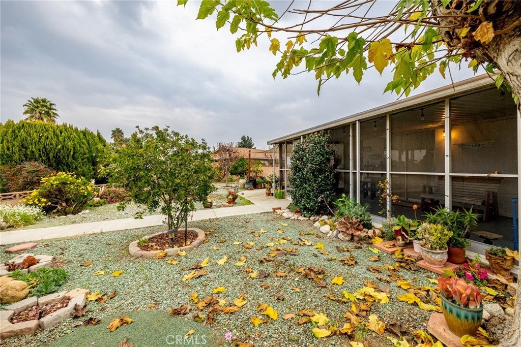 Welcome home to this move-in ready, well-maintained, upgraded 55+ community single level home featuring 2 bedrooms and 2 bathroom in over 1000 square feet of living space. You will find a large front living area with adjacent dining area connected to the upgraded kitchen space. There is also an attached fully enclosed sun room with plenty of space for lounging, entertaining, gardening or whatever you desire. Out back you will find a large wrap around backyard space with plenty of room to make it your own. There are several mature fruit trees on the property including apples, oranges and pomelo. Best of all the community pool is a hop and a skip away from your backyard and almost in your backyard. The property also has an upgraded electrical panel, upgraded HVAC and the roof has been replaced within the last 5 years. Located near grocery stores, eateries and amenities nearby. Schedule your visit today and don't miss out on this one!
