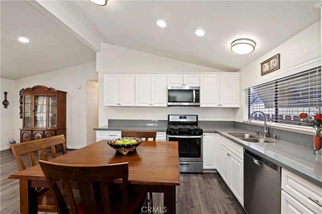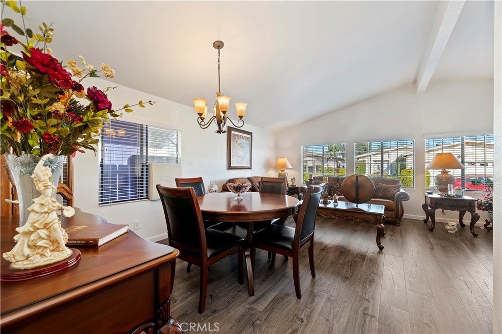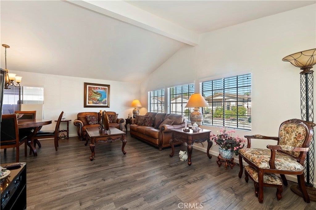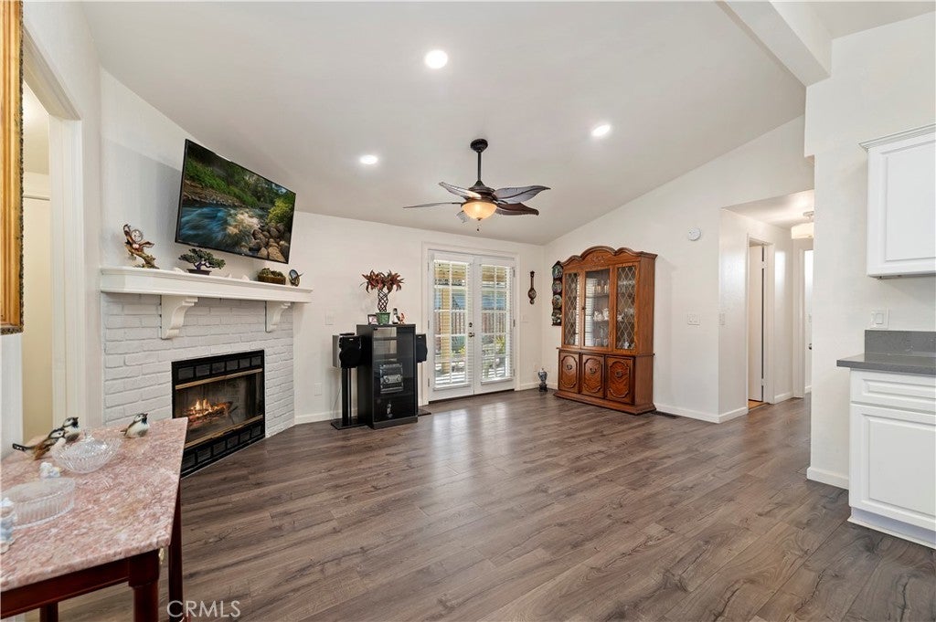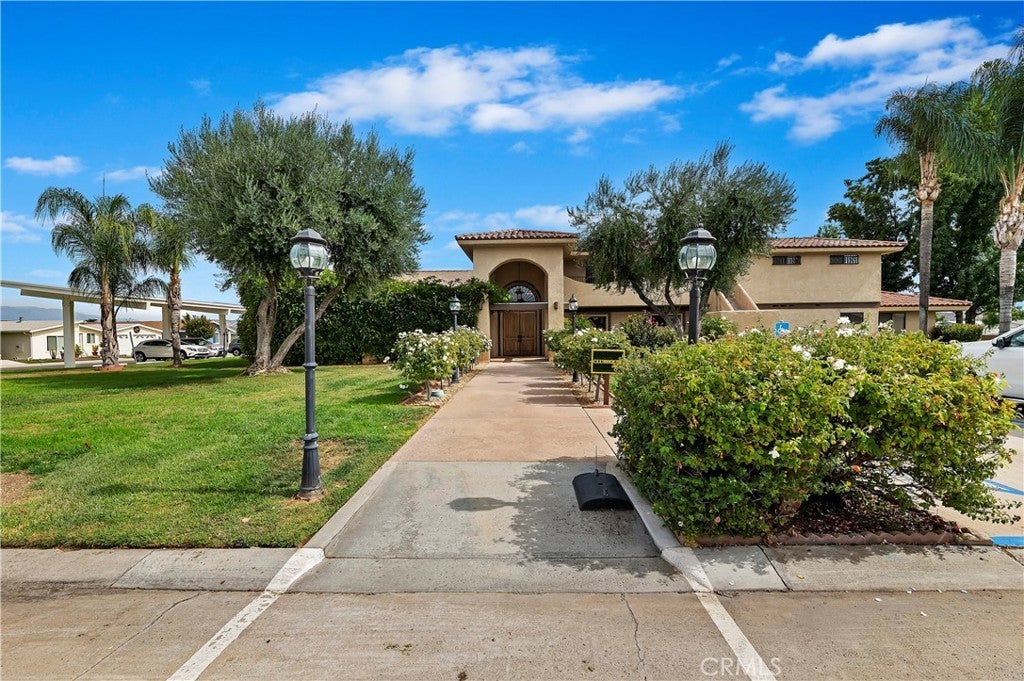 Welcome to Sun Meadows, Menifee’s premier 55+ community. This beautifully maintained 2-bedroom, 2-bath home offers comfort, convenience, and thoughtful upgrades throughout. The updated kitchen features Corian countertops, stainless steel appliances, recessed lighting, pull-out cabinet shelving, and soft-close drawers—designed for everyday ease and enjoyment. Wood laminate flooring flows throughout the living spaces, complemented by tile flooring in both bathrooms. French doors in both the family room and the spacious primary bedroom open to a serene, low-maintenance backyard with brick hardscape and a covered Alumawood patio that spans the length of the home—ideal for morning coffee, entertaining, or quiet evenings outdoors. The primary suite includes a walk-in closet and direct access to the backyard, creating a peaceful retreat. Additional highlights include a 2-car attached garage with built-in storage cabinets and a finished drywall interior. Sun Meadows is the premier senior manufactured home community, offering an exceptional lifestyle with an impressive array of amenities—all included in the space rent. Residents enjoy a resort-style pool, clubhouse, pickleball courts, putting green, indoor spa and sauna, library, shuffleboard, and more. With an active social calendar and beautifully maintained grounds, Sun Meadows provides the perfect blend of relaxation, recreation, and community living. Buyer to be aware that Space Rent for this unit is $975.41 per month and Buyer must qualify with Sun Meadows.