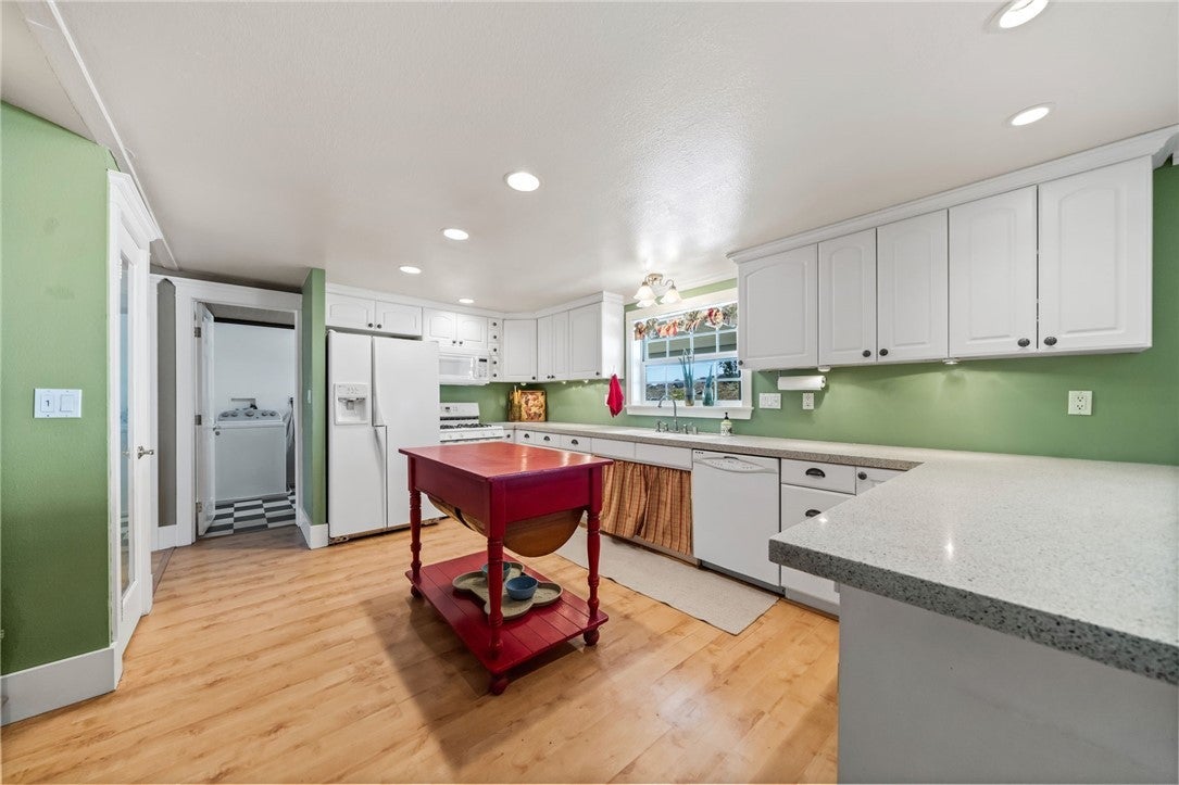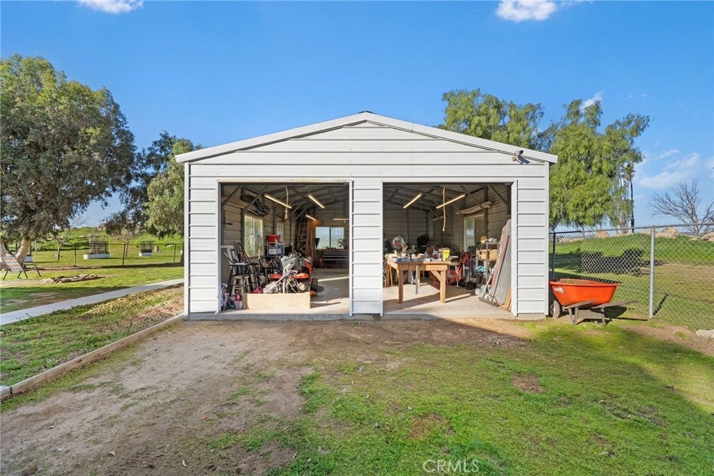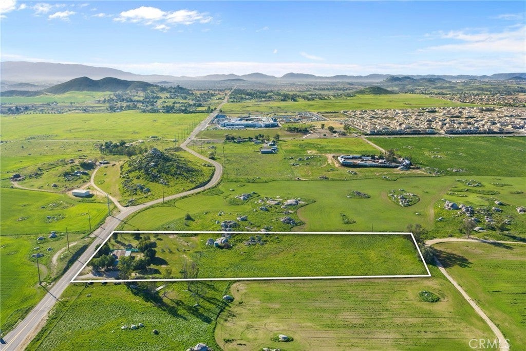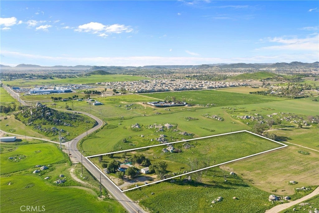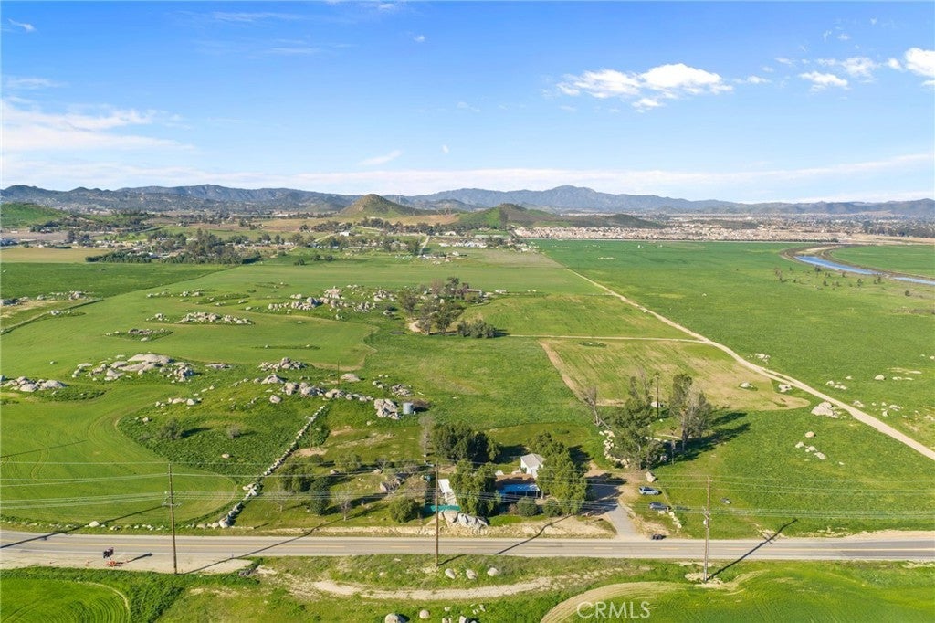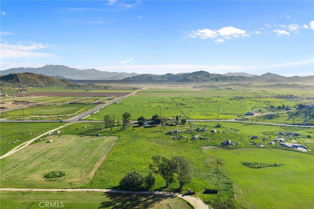 Great opportunity! Over 5.37 acres of usable land! Zoned A-!-5 for light agriculture gives you many choices for using the land. Views all around. Home is on a 433A foundation! The home has 4 bedrooms, 2 bathrooms including a mudroom with access to backyard.. Large living room with vaulted ceiling has access to side patio through the French doors with side panels that open for fresh air. Laminate flooring through the main living areas. Kitchen offers lots of counter space with quartz counters, microwave, dishwasher and stove and glass door pantry. Roll out shelves great for baskets! Large farmhouse style double sided sink with picturesque window looking out the back. Bring your barstools to eat at the island or at the large dining room. The primary bedroom is located at one of the home away from the other three bedrooms. Vaulted ceilings and three semi-walk-in closets. The primary bathroom has a new vanity with dual sinks, quartz counter, new fixtures and lighting and Luxury Plank Vinyl Flooring. Substantial deep patios were added with Allumawood patio covers. The patios are deep and concrete slabs. The front door patio is wide and long. A separate Garage/Workshop is big with cement slab floor, high ceiling and has two metal roll-up doors with plenty of room for all those play toys. It’s being used as a workshop. The home itself is fully fenced in. According to Riverside County Office, you can add and ADU and additional dwelling attached to the home however, please verify for yourself with Riverside County. Land has a gentle slope to the back of the property. Septic and Well certs are already done. This is your chance to own land before it’s all gone. Close to Holland Rd., Scott Rd., Liberty High School and easy access to freeway and amenities.