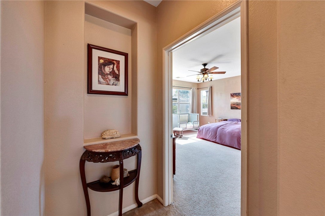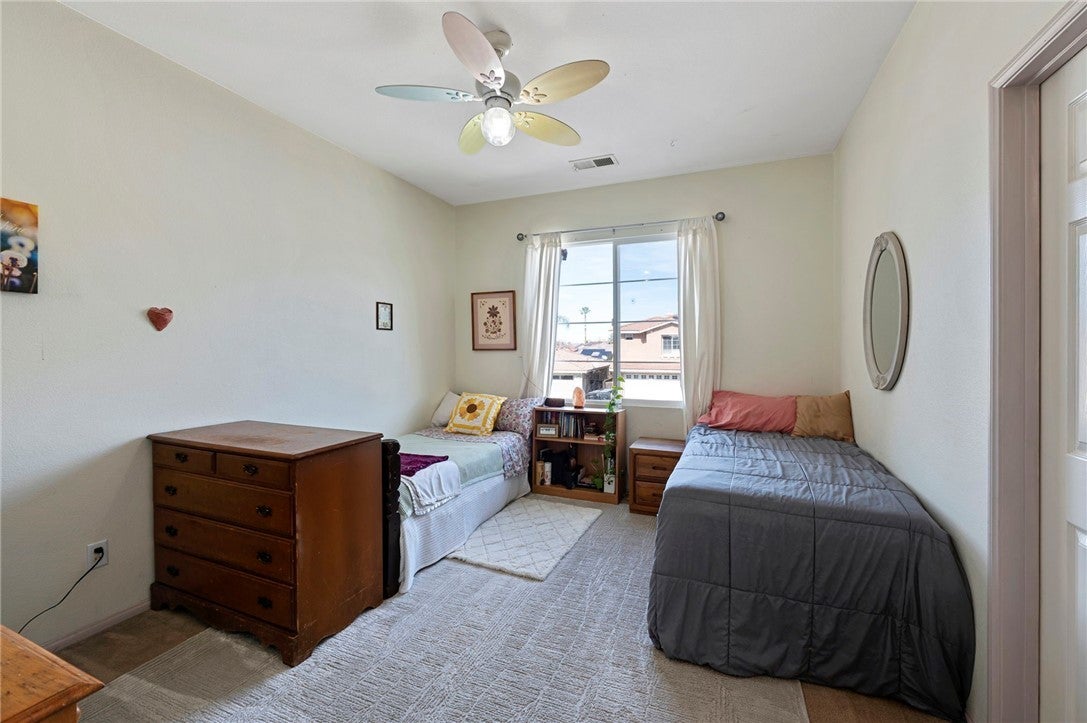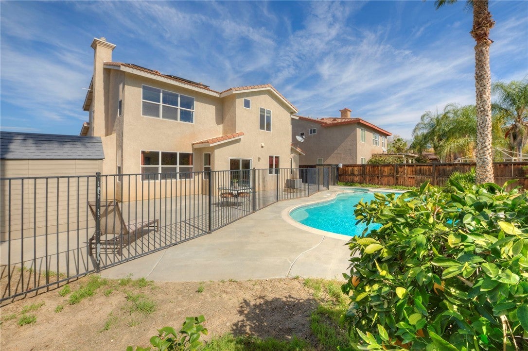PRICE REDUCED!! Beautiful Pool Home on a Cul-De-Sac in San Jacinto! This spacious four-bedroom, three-bath home offers nearly 2,800 sq ft of well-designed living space, featuring a welcoming two-story entry, expansive great room, and an oversized kitchen with quartz counters, stainless steel appliances, center island, and breakfast nook. A convenient downstairs bedroom and full bath provide flexibility for guests or multigenerational living. Upstairs includes a generous loft, two secondary bedrooms, and a private primary suite with a large walk-in closet, dual vanities, soaking tub, and walk-in shower. The backyard is an entertainer’s dream with a private saltwater pool and spa, and some fruit trees including pomegranate, fig and lemon. Located on a double cul-de-sac near shopping, schools, parks, Soboba Casino, and with easy access to Ramona Expressway. Solar power for helping to keep your comfort level high and your electricity cost manageable. This one is not going to last! Hurry and make your appointment today!