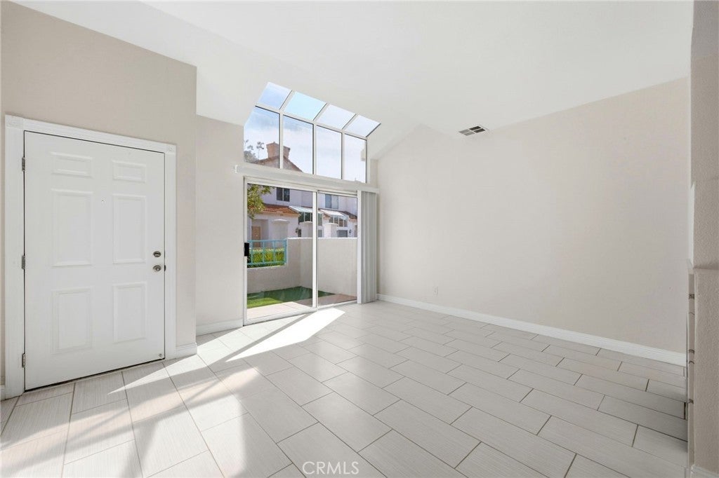 Have you been searching for that completely remodeled, move in ready condo? Well, look no more. This 2-bedroom condo has everything you have been wanting from, beautiful newly installed custom tile throughout the lower level including the living area with gas fireplace framed in light colored quartz, family dining area, breakfast bar and kitchen have been upgraded with quartz counter tops, new dishwasher, microwave, gas oven, refrigerator, new farm sink, freshly painted white cabinets and upgraded lighting features. There is plenty of storge with 2 lower-level closets you can use one for a pantry. Lower bath has new vanity, lighting features and much more. All new baseboards throughout the condo. Upper level has nicely sized guest room, mirrored wardrobe doors, ceiling fan and newly installed carpet. Guest bath has completely been updated, new shower/tub combo, vanity, new tile flooring, mirror and lighting features. Main bedroom is very spacious with newly installed carpet, large, mirrored wardrobe doors and ceiling fan. Main bath is all new as well with new shower/tub combo, vanity, lighting and flooring. There is a laundry closet with double folding doors and a new washer and dryer. This condo has been completely redone from top to bottom! Attached 2 car garage with epoxy flooring. This unit is bright with lots of natural lighting. The community has sport court, pool and club house. Location is perfect for walking to school, promenade mall and the MSJC campus. Did I mention the private gated front patio area! Get ready to move!