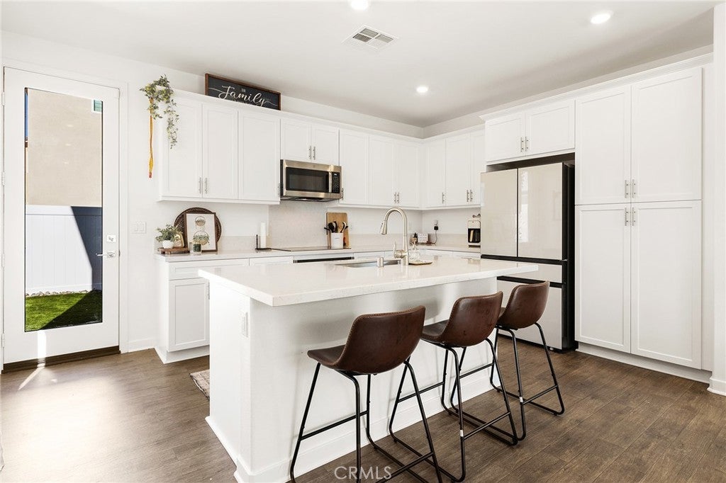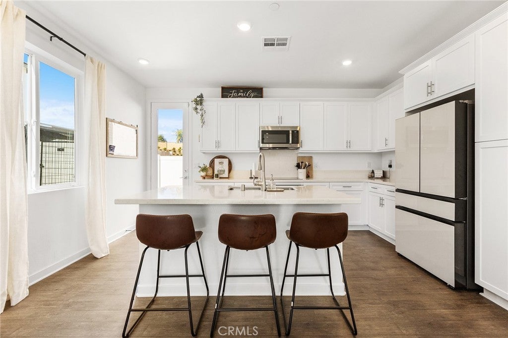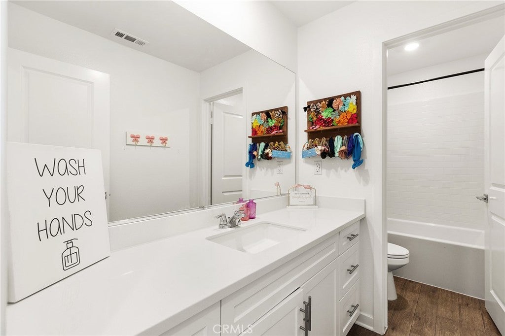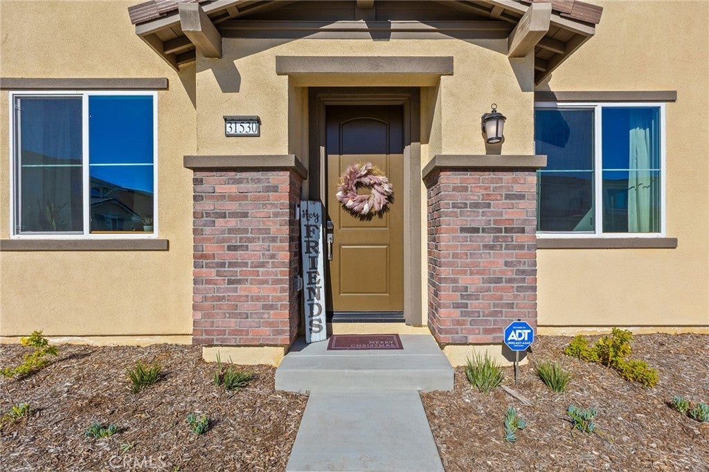 Welcome to this stunning 2025-built home in the gated Sunstone Community, located within the highly desirable Marquise Collection. Situated on a premium corner lot with ample parking, this light-filled residence offers modern comfort, energy efficiency, and thoughtful design throughout. Step inside to an open-concept floor plan with luxury vinyl flooring and abundant natural light. The entry welcomes you with a beautiful custom accent wall, setting the tone for the stylish interior. The chef’s kitchen features quartz countertops, sleek finishes, and seamless flow into the living and dining areas—perfect for everyday living and entertaining. The home includes a downstairs bedroom and full bathroom, ideal for multigenerational living, in-laws, guests, or a private home office. Upstairs, you’ll find a spacious laundry room with extensive built-in storage, making daily routines effortless. Designed with efficiency and peace of mind in mind, this home is equipped with artificial turf landscaping, solar with a backup battery, a tankless water heater, ADT security system, and a garage EV plug-in. An assumable 3.875% VA loan adds exceptional value for qualified buyers. Located in the prestigious and highly sought-after Murrieta School District, this home is close to top-rated schools, dining, and shopping. The HOA covers front yard maintenance and offers exciting future amenities, including a pool, tot lot, and recreation center. This is a rare opportunity to own a nearly new, energy-efficient home in one of the area’s most desirable gated communities. Don’t miss out—schedule your private tour today!