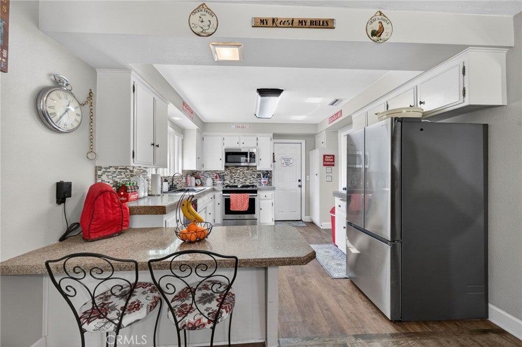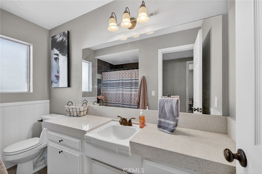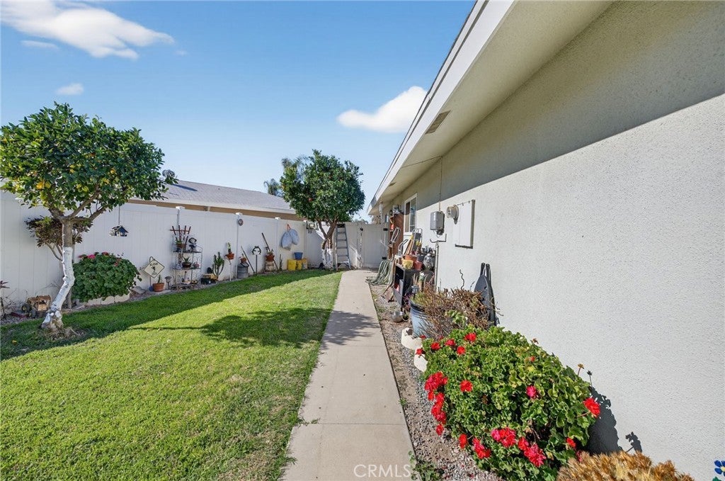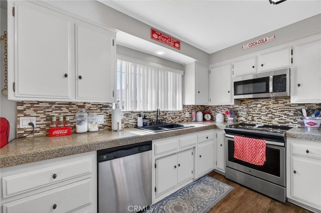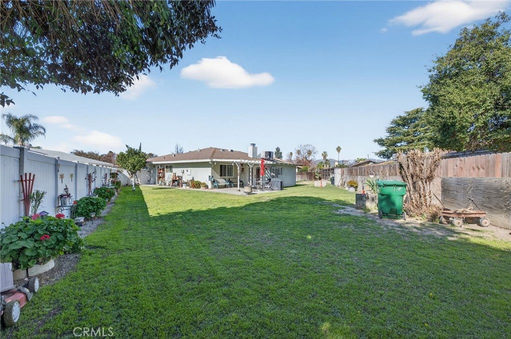 Welcome to this beautifully maintained 3-bedroom, 2 bath home offering tons of living space on a generous 10,789 sq ft lot, ideally located at the end of a quiet cul-de-sac. The interior features a stylish two-tone color palette in soft grays and whites, complemented by tile backsplashes, dual-pane windows, and tile and LVT flooring throughout. The kitchen offers ample storage including a walk-in pantry, while the bathrooms showcase tastefully accented tile showers. The spacious primary bedroom features dual closets, and all bedroom closets are equipped with lighting. Additional highlights include abundant closet space, a 40-gallon wall-mounted hot water tank that preserves garage floor space, and a two-car attached garage with laundry area, utility sink, and overhead storage. The expansive backyard is large enough to accommodate a pool, and also features mature pomegranate, lemon, and orange trees, offering both function and outdoor enjoyment. A thoughtfully cared-for home with plenty of space in a desirable location, just minutes from schools- an excellent opportunity.