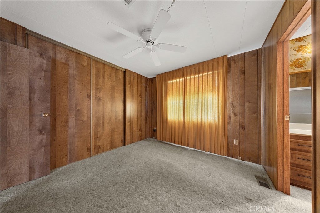 Built-in Features, Ceiling Fan(s), Laminate Counters, Storage, All Bedrooms Down, Bedroom on Main Level, Main Level Primary, Walk-In Closet(s), Wood Product Walls
