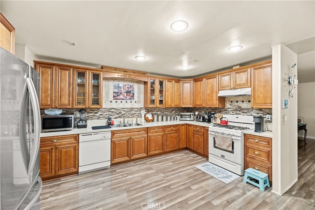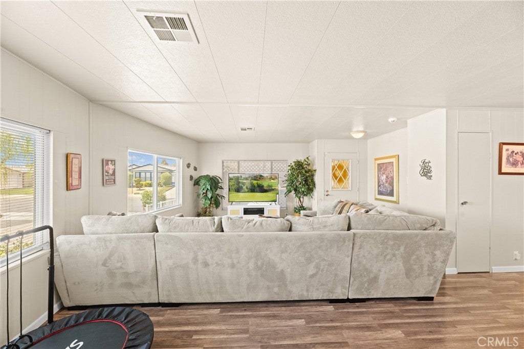 Beautiful corner lot home in a senior golf community with low HOA and county taxes! This home is a 3 bed, 2 bath with an office space! This home is on permanent foundation with a 433C. The layout includes a private third bedroom with a kitchenette behind the garage—perfect for a caregiver, guest, or multigenerational living. Beautiful updated kitchen with plenty of space that features a pot-filler above the stove for added convenience. Brand new roof, new flooring & paint. Enclosed porch opens with sliding doors to the family room & office space, offering extra living space and natural light. Master bedroom includes added closet space. Large, private patio overlooks a lush garden with a variety of fruit trees—ideal for relaxing or entertaining. A rare and flexible floor plan in a peaceful, amenity-filled community!