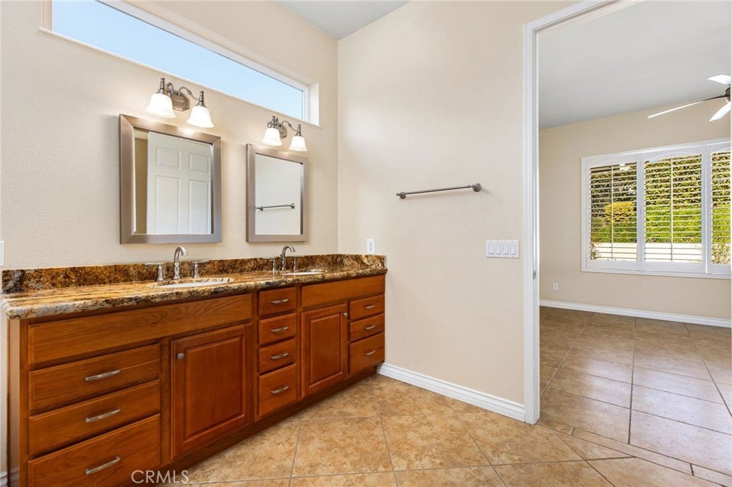 Welcome to this beautifully upgraded Emerald model in the guard-gated Sun Lakes Country Club, a premier 55+ community in Banning. Offering 2 bedrooms plus an office (or convert to a 3rd bedroom), 2.5 bathrooms, and 2,133 sq ft of spacious living on a 6,534 sq ft lot, this home has been thoughtfully renovated with high-end finishes throughout. Interior highlights include designer paint tones, plantation shutters, plush carpet in the living areas, and large porcelain tile in high-traffic spaces. The open kitchen showcases granite countertops with a full backsplash, coordinated cabinetry, and upgraded finishes that carry seamlessly into the bathrooms and laundry room. The primary suite features a remodeled bath with updated fixtures and a beautifully finished travertine shower with glass enclosure, along with generous storage. A two-car garage adds everyday convenience. Sun Lakes Country Club offers an exceptional resort-style lifestyle with two golf courses, three clubhouses, multiple pools (including an indoor pool), a full-service restaurant and lounge, tennis and bocce ball courts, and a full calendar of social activities, all within a secure gated setting. This move-in-ready home blends comfort, style, and one of the Inland Empire’s most desirable active adult communities.