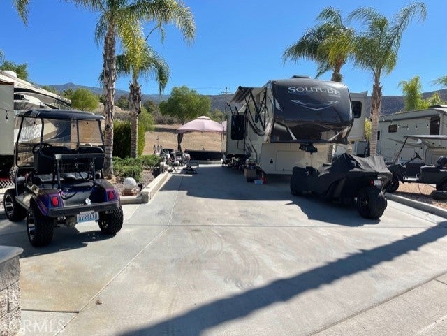 Extra-large RV site featuring extended concrete designed for entertaining, with ample room for your RV and outdoor living. The property backs to a wide open grassy field, offering peaceful views, (potential golf course in open area) added privacy, and space to relax or play. There’s plenty of room for extra vehicles and a golf cart, along with a large shade cover perfect for hosting friends and guests. A built-in sitting wall with accent lighting adds warmth, ambiance, and comfort for evening gatherings. Ownership at Rancho California RV Resort includes access to a 14-hole executive golf course (free for owners), five pools and jacuzzi areas, tennis courts, pickleball courts, laundry rooms, dog park, horseshoe lawn, clubhouse, and scenic hiking trails. The community is guard-gated and monitored 24/7, with no age restrictions. Enjoy peace, quiet, and open space—all just 25 minutes from Temecula Wine Country. Live here full-time or rent your space. Financing available. Owner financing also available... Come see this hidden gem for yourself.