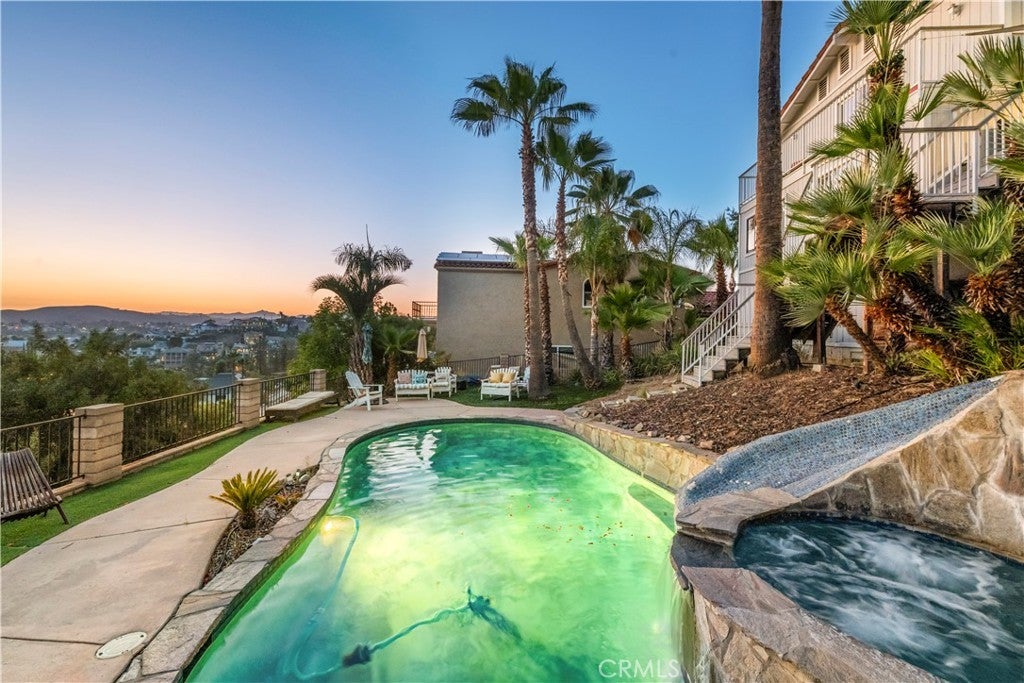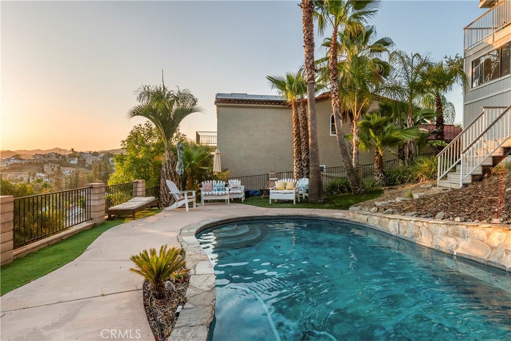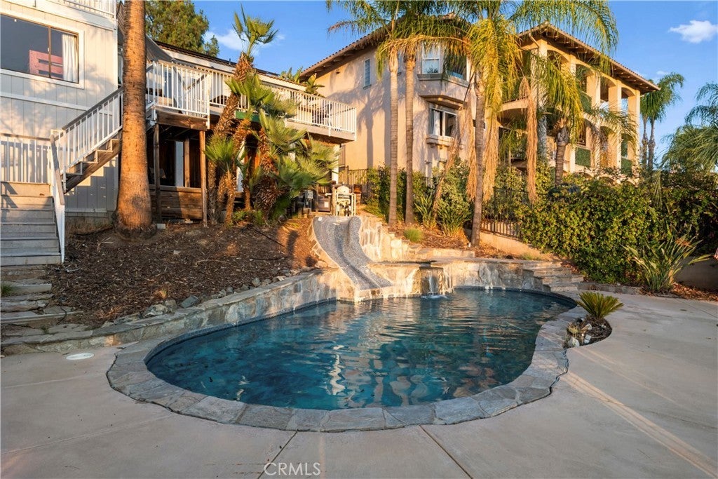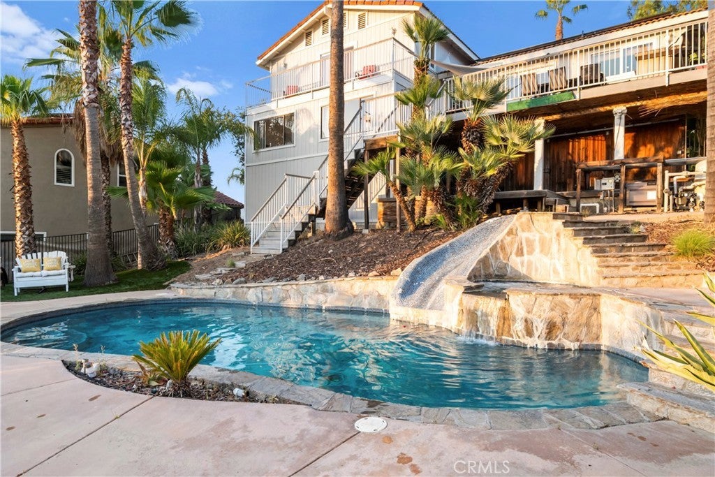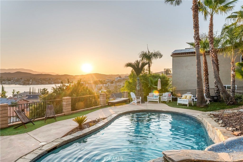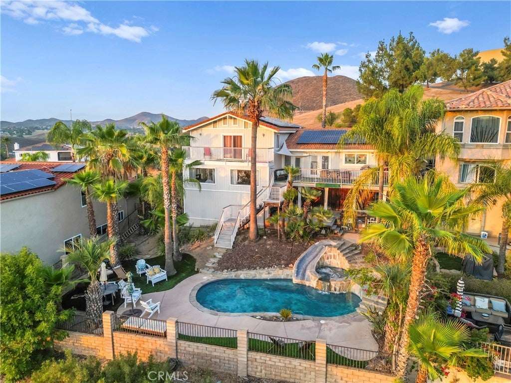 This Mid-Term Rental is in the private community of Canyon Lake. Canyon Lake sits in the middle of Orange County, Los Angeles, San Diego and Palm Springs, it is approximately an hour from each city. If you are looking for a rental from one-six months (can go longer depending on the situation) whether you are having to transfer from a job for a short period of time to waiting for your new home to be built or wanting a getaway with family and friends for a month or two to enjoy our beautiful Canyon Lake and all the amenities that it has to offer (18 hole golf coarse, tennis courts, pickleball courts, lake, paddleboarding, kayaking, etc), this house is what you are looking for. This home has a beautiful pool with a 15 ft slide, hot tub/jacuzzi, indoor/outdoor room, 3 rear decks, and outdoor BBQ grill with a kitchen station and eating areas. Four bedroom + large office and 3 bathrooms. There are three rear decks an outdoor fireplace, it has seating off the back balcony that you can enjoy over looking the lake and watching some of the most beautiful sunsets. Owner pays for power, water, pool service and maintenance, landscaper, internet, cable, propane for BBQ and maybe for spa, and all other maintenance! This home comes fully furnished, just bring your clothes and other necessities!! .