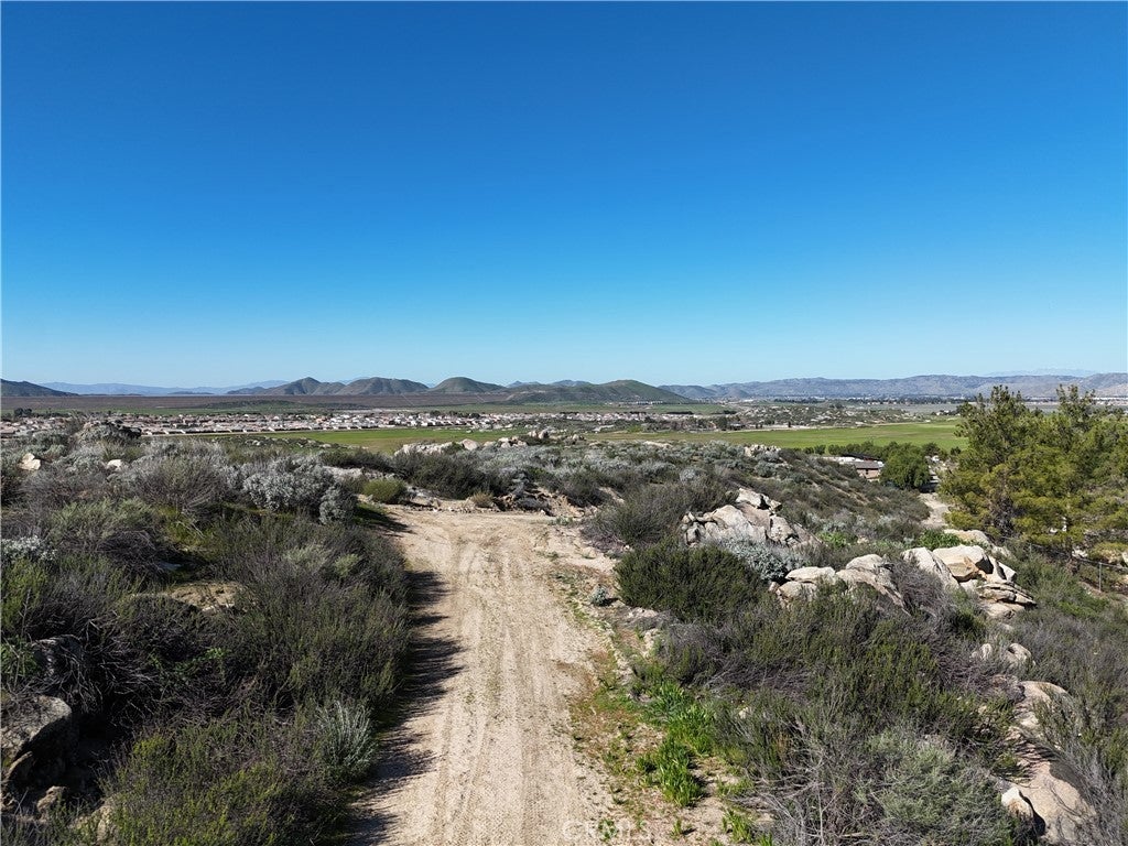 Discover your perfect canvas for a dream custom home or private estate on this expansive 5.44-acre rolling parcel, nestled in a peaceful, rural neighborhood on the southeastern outskirts of Hemet, this prime lot offers a rare combination of seclusion, stunning natural beauty, and unbeatable convenience. Enjoy spectacular views! This property features breathtaking panoramic views of surrounding hills and sweeping valleys. Imagine waking up to dramatic sunrises and golden sunsets every day from your future build site. Flat spaces of land already in place to maximize those incredible outlooks, while the rolling terrain provides natural contours for privacy and elevation. The lot is zoned R-A-2 for flexible rural/residential/agricultural uses, ideal for a single-family residence, potential horse property, or family compound (buyer to verify all intended uses / current zoning and seek counsel from land use attorney and County of Riverside). Enjoy the true feeling of country living in this quiet, low-density area with scattered homes on acreage, mature natural surroundings, and minimal traffic. At the same time, you're just minutes from everyday essentials in the city of Hemet, including shopping, dining, and medical facilities, as well as the growing amenities of Menifee. Easy access to major routes puts outdoor recreation like boating and fishing at Diamond Valley Lake, hiking trails, and the San Jacinto Mountains within easy reach. This is a rare opportunity in the desirable Starlight Mesa area—prime acreage with sweeping hill and valley views doesn't come around often. Whether you're building your forever home, seeking an investment, or wanting a peaceful escape, this parcel delivers exceptional value and lifestyle potential. Priced to sell!