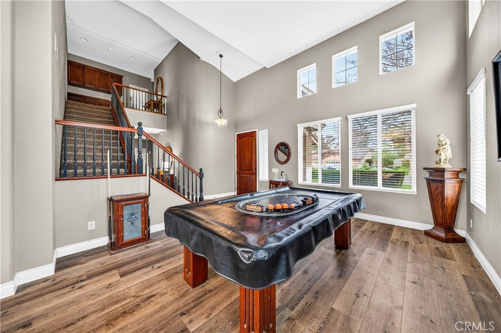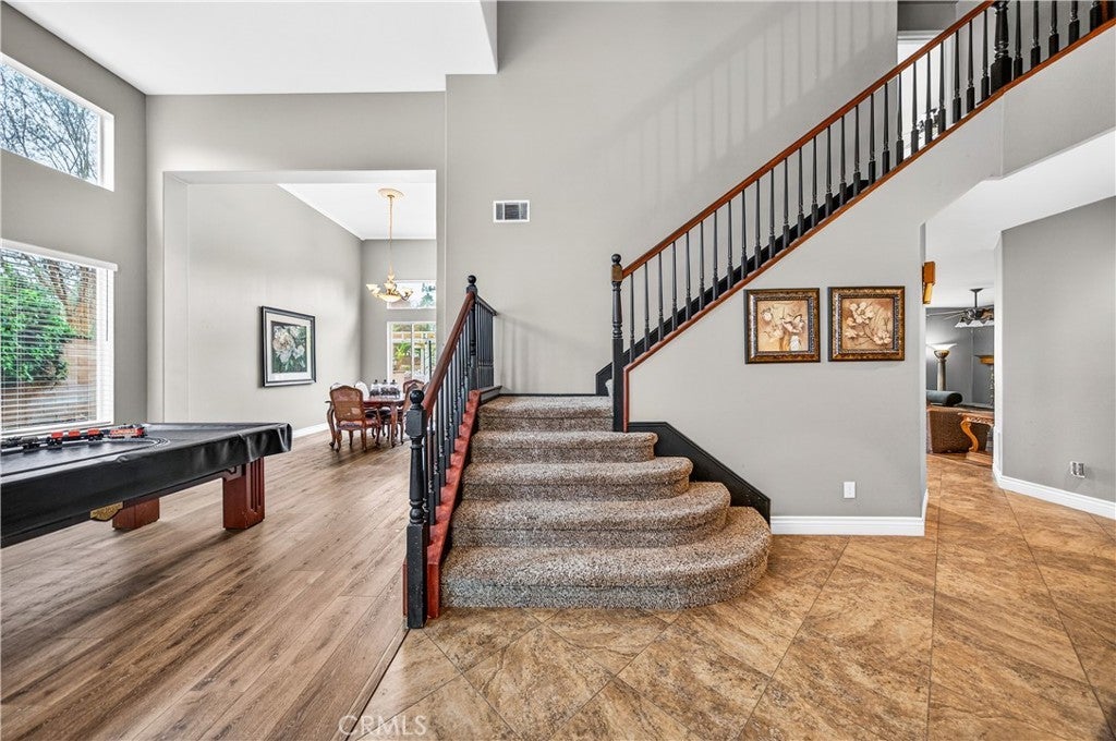 An upgraded gem in one of South Temecula’s most beloved communities, this stunning pool home in Temecula offers an exceptional open layout highlighted by soaring lofted ceilings at the entry and a spacious formal dining area perfect for gatherings. The heart of the home is the beautifully appointed chef’s kitchen, featuring granite countertops, stainless steel appliances, and generous prep space, all flowing seamlessly into the inviting family room with a cozy fireplace and custom built-in entertainment center ideal for everyday living and entertaining alike. Upstairs, the oversized primary suite serves as a true sanctuary, complete with a walk-in closet and a private balcony showcasing a spiral staircase that leads directly to your backyard retreat. Situated on a large corner lot, the backyard is a private oasis with a sparkling Pebble Tec pool, a built-in BBQ island with bar seating for effortless outdoor entertaining, a new vinyl fence along the south side, and a thoughtfully designed side yard with a separately fenced area perfect for gardening or pets. Located in the highly sought-after Paseo Del Sol community, residents enjoy access to resort-style amenities including pools, parks, playgrounds, and scenic walking trails, all within a quiet and peaceful neighborhood setting. From its tropical summer vibes to its impressive indoor-outdoor flow, 43898 Carentan Drive is more than a home it’s the perfect backdrop for making lifelong memories. Schedule your private showing today and experience this corner-lot beauty for yourself.