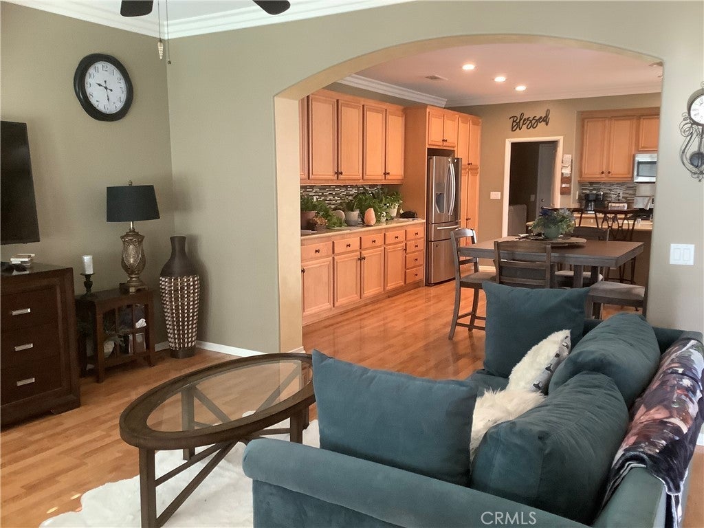 Welcome to the Four Seasons! This beautiful home has the desired Legends Model II open floor plan with breathtaking golf course views! This is a turnkey move in ready home that features 2 bedrooms, 2 baths, a Den that can also be used as a 3rd bedroom, and a 2-car attached garage. Large primary suite has a nice en-suite and large walk-in closet. The Spacious open kitchen has plenty of cabinet and countertop space, large center island, beautiful backsplash, and dining area with view of patio. The lovely patio has a quaint seating area with pergola and a relaxing environment perfect for entertaining guests. Guest parking is conveniently located very close to the house. Experience living in an active community with amenities to include a pool/spa, fitness center, golf course, tennis/pickleball courts, movie theater, arts & craft room, library, game room, computer room, Bistro, BBQ area activities and entertainment. Please note, a buyer of any age can purchase this home, only the person that is going to occupy the residence must be 55+ as this is an active 55+ community.