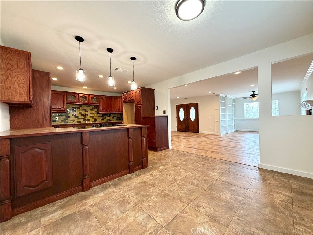 Welcome to the sought-after community of Canyon Lake, where resort-style living meets everyday comfort. This unique home offers 3 bedrooms and 2 bathrooms in the main living area, plus a separate 4th bedroom with a full bathroom and private entrance—perfect for guests, extended family, or a private workspace. Residents enjoy access to incredible community amenities including the iconic lake, golf course, lodge with restaurant, community pool, tennis and pickleball courts, 24/7 gated security, and so much more. As you arrive, you’re greeted by low-maintenance landscaping and a welcoming staircase leading to the main entry. Inside, the spacious living room features luxury-style flooring, recessed lighting, and built-in shelving ideal for books, décor, or additional storage. A convenient coat closet is located near the front door. The kitchen is both functional and stylish, showcasing a cozy nook with an electric stovetop, pendant lighting, sleek countertops, wood-finish cabinetry, and recessed lighting throughout. Down the hallway, the primary suite serves as a relaxing retreat with recessed lighting, a large closet, and an updated en-suite bathroom featuring dual sinks, white cabinetry, dual vanities, and a shower/tub combination with upscale finishes. Two additional bedrooms are generously sized and feature matching elegant flooring and recessed lighting. The hallway bathroom includes tile flooring and a shower/tub combination. From the kitchen, access the lush, green backyard, offering a peaceful outdoor setting and access to the lower level. Downstairs, you’ll find the garage and a bonus living area complete with a full bathroom, spacious bedroom, ample closet space, and its own private front entrance which is a standout feature that adds flexibility and privacy. Located in proximity to schools, shopping, dining, freeway access, and all that Canyon Lake has to offer. Schedule your private showing today this home won’t last long!