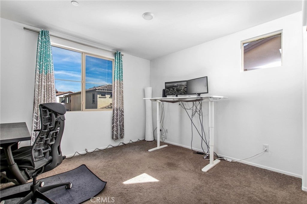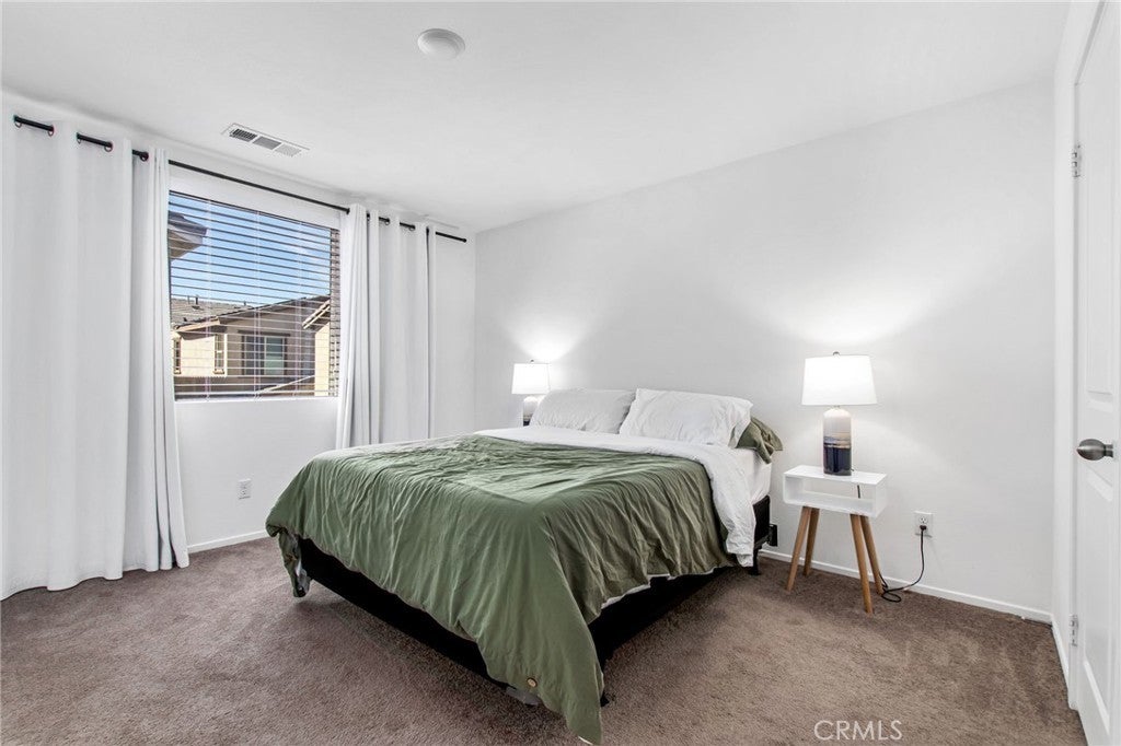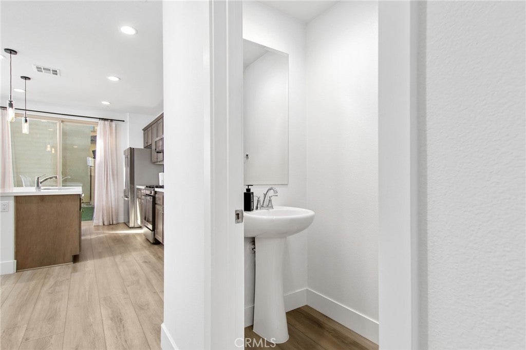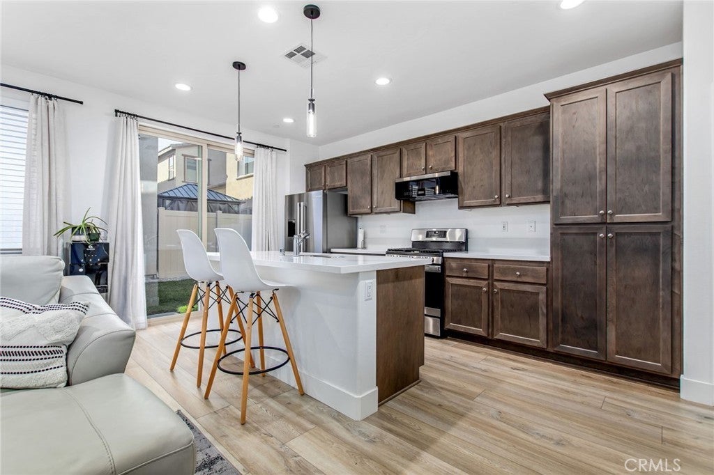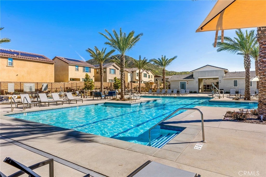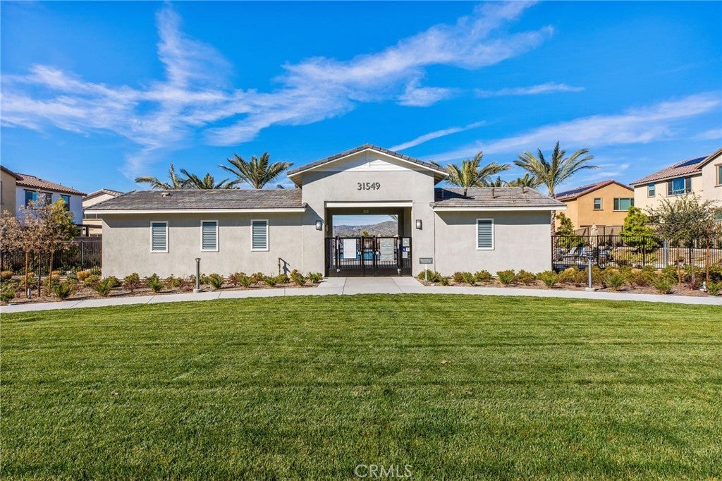 Welcome to this stylish 3-bedroom, 2.5-bath condominium in Copper Skye gated community with two secure private entrances. Nearly 1,400 sq. ft. of thoughtfully designed living space features an open floor plan with vinyl plank flooring, abundant natural light, and quality finishes throughout. The kitchen is a focal point with elegant cabinetry, quartz countertops, and a generous center island ideal for meal prep and gatherings. Custom interior shutters on first-floor mini wall windows add refined detail to the living spaces. A direct connection to your private, eco-friendly patio offers a rare combination of natural grass and low maintenance surfaces perfect for outdoor seating, pets, casual play, grilling, or quiet evenings. Upstairs, the three bedrooms are well-sized with walk-in closets and carpeting, and a conveniently located laundry area with linen closet enhances everyday ease. Included are professionally produced 3D tour, video tour, and floorplan media to showcase flow and spatial relationships. Community amenities include a brand-new resort-style pool and palm-lined common areas maintained by HOA for leisure and social opportunities. The low HOA and tax structure enhances value and convenience. Nearby places for everyday needs and recreation include Winchester-Domenigoni Community Park, Conestoga Park, Lake Skinner Recreation Area, and neighborhood green spaces. Daily errands are supported by nearby French Valley Village Center grocery and retail options, Grocery Outlet, Stater Bros. Markets, Winchester farm market and swap meet, and additional services. This property offers a blend of indoor comfort, outdoor enjoyment, community lifestyle, and proximity to shopping, recreation, and open space, a compelling opportunity in Winchester.