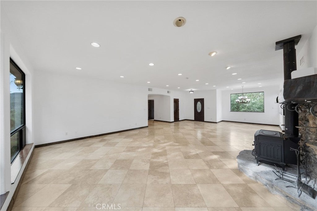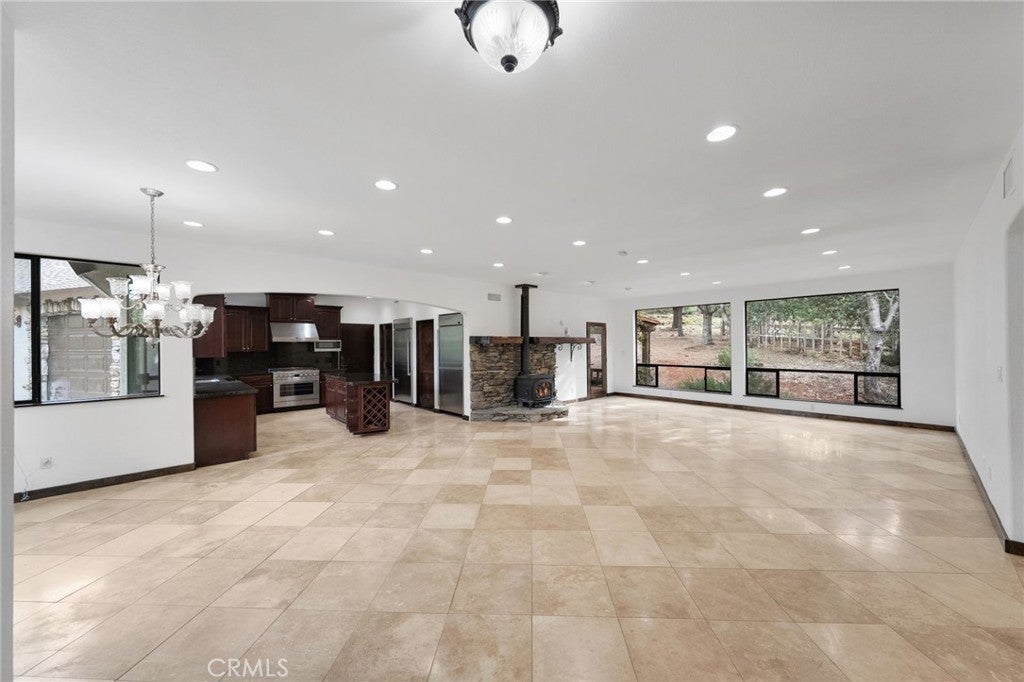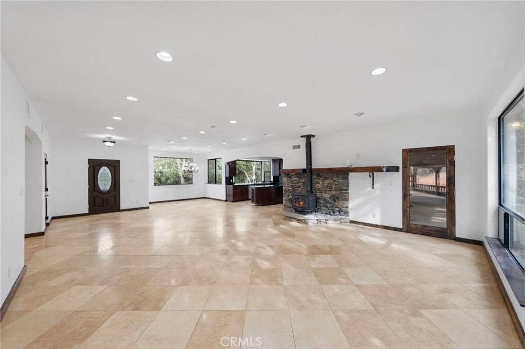 Nestled on 2.57 private, wooded acres, this beautifully upgraded single-story residence offers 3 bedrooms, 3 full baths, and the perfect blend of comfort, space, and scenic tranquility. A long, extended driveway leads to the gated entrance, creating a grand and secluded approach. Designed for both everyday living and entertaining, the home features elegant tile flooring and a cozy stove fireplace that adds warmth and character to the main living area. Thoughtful upgrades can be found throughout, showcasing quality finishes and attention to detail. The stunning chef’s kitchen boasts an oversized window that perfectly frames the breathtaking views, generous counter space, and an expansive walk-in pantry. A separate laundry room provides added convenience. The spacious primary suite serves as a private retreat, complete with a luxurious ensuite bath featuring dual vanities, an oversized walk-in shower, and a classic clawfoot soaking tub positioned to capture panoramic views of the surrounding landscape. Car enthusiasts, hobbyists, or those needing additional storage will appreciate the attached 3-car garage, offering ample space and versatility. In addition, the property includes a separate workshop, ideal for woodworking, creative projects, or extra storage. Step outside to the covered back patio, perfect for relaxing or entertaining while enjoying the peaceful setting and mature trees that surround the property. Don’t miss this rare opportunity to own a private, single-level retreat with acreage, functional workspace, and breathtaking views. Schedule your private showing today and experience all this exceptional property has to offer.