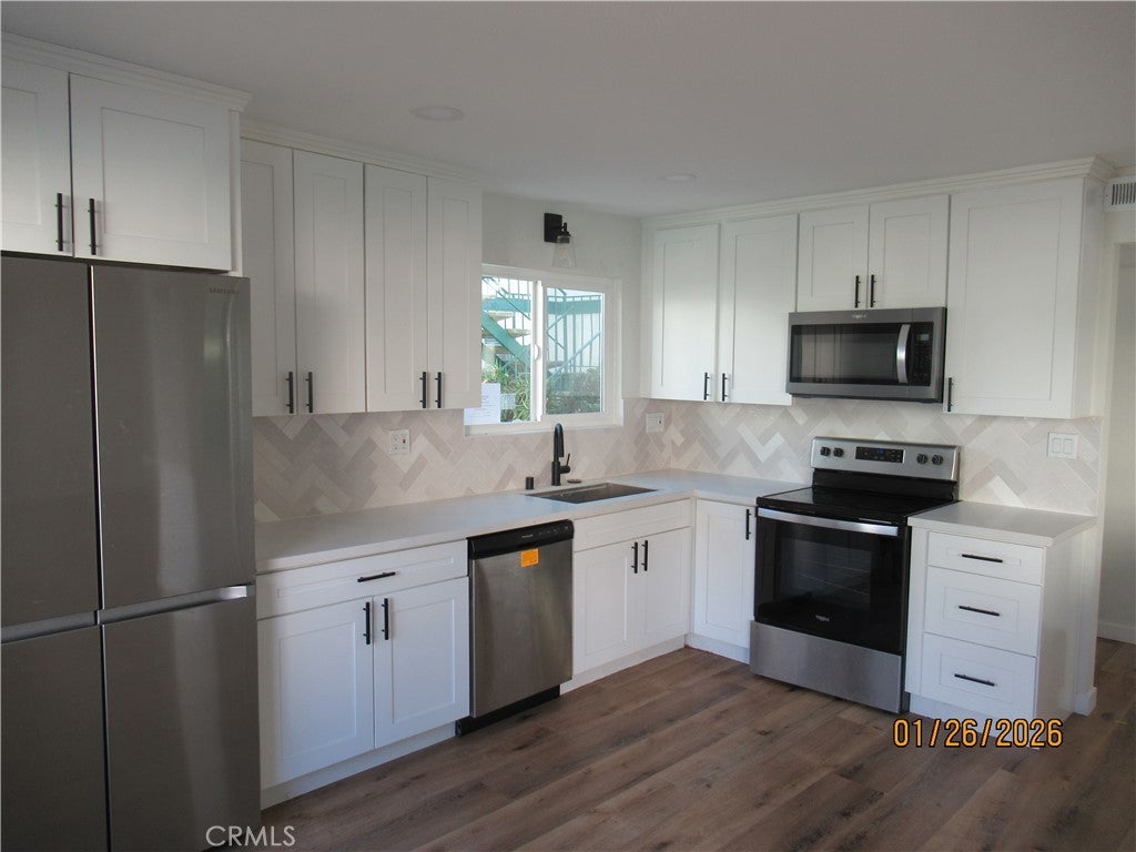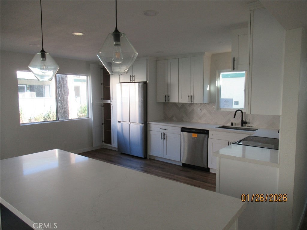 This updated unit features three-bedrooms two bath and is a ground floor corner unit. Kitchen has shaker cabinets, quartz countertops, a farmhouse sink, and stainless-steel appliances. Wood-like vinyl plank flooring throughout. Come take a look you will be glad you did.