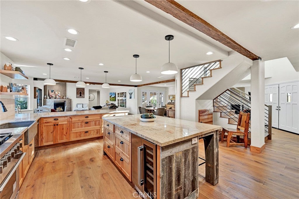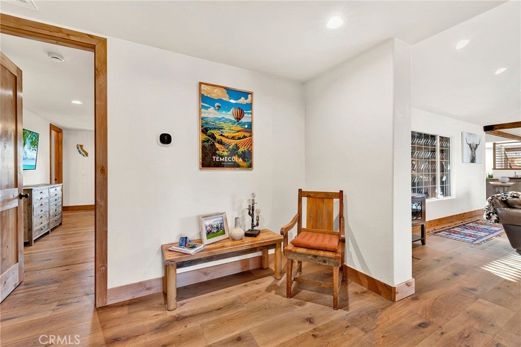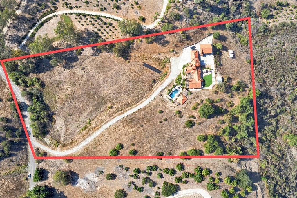 Welcome home to this stunning Mediterranean-inspired estate, set amidst the breathtaking views of Temecula Wine Country. Nestled on 8.63 peaceful acres of rolling land, this property offers the perfect balance of tranquility and luxury. The main home spans a generous 3,579 square feet and has recently undergone an extensive, high-end remodel. It features a beautifully appointed main-level primary suite, a junior suite, a guest bathroom, and a separate laundry room with ample storage. Upstairs, you’ll find an additional suite with two bedrooms, each with its own closet, and a shared full bathroom. The heart of the home is the chef’s kitchen, complete with top-of-the-line appliances, stunning "Knotty Alderwood" cabinetry, sleek granite countertops, and a cozy breakfast nook. The great room boasts a stately Venetian plaster-style fireplace, while the formal dining area offers the perfect setting for dinner parties. Step into the living room with a second fireplace, adding elegance to the living spaces. Throughout the home, you’ll enjoy beautiful engineered hardwood flooring, complemented by gorgeous tile and stone accents in the bathrooms. Multiple patios, including an expansive covered patio system, provide plenty of space for outdoor living. The outdoor cabana-style room with a mounted TV is perfect for entertaining, while the uncovered firepit patio overlooks your sparkling pool and spa—ideal for relaxing and unwinding. For extra versatility, an attached bonus room near the covered carport offers a great space for additional sleeping quarters, a gym, or a flexible room to suit your needs. The detached, two-story, 6-car garage is a true standout, featuring roll-up doors, a bonus/office space with a beautiful cabinet and sink, and an additional upstairs studio. The amazing backyard has panoramic views, multiple patios, planter boxes and pots around the backyard, along with a pickleball area and putting green. Additionally, there is a spacious chicken and small animal coop, plus 2 more small animal stalls on the lower level. With its stunning outdoor spaces, captivating views, and quality upgrades throughout, this property offers everything you could want in a home. There’s truly no place like it!