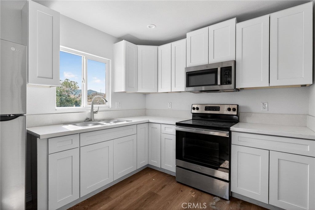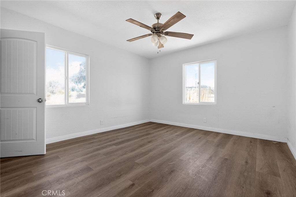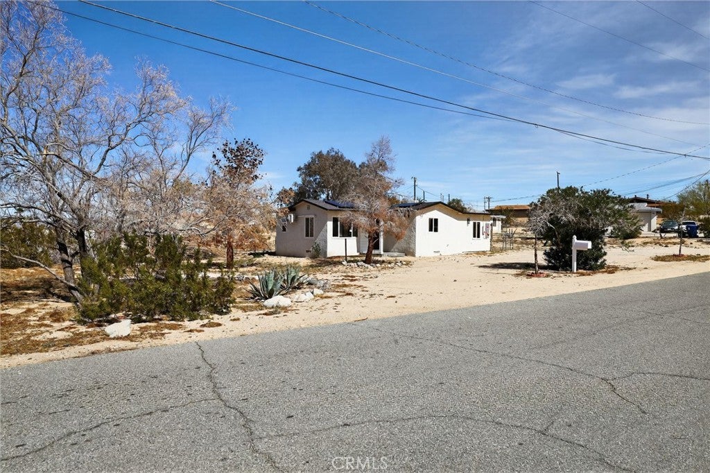 Charming 2-bedroom, 1-bathroom home situated on an approximately 16,000+ sq ft lot. Updated in 2024, the property features new electrical, roof, stucco, windows, doors, fixtures, appliances, mini-split system, flooring, and fresh interior and exterior paint. The home offers abundant natural light and a functional layout. The spacious lot includes a circular driveway and provides ample room for potential expansion or additional improvements (buyer to verify). Conveniently located less than 10 minutes from the entrance to Joshua Tree National Park and close to local amenities and outdoor recreation. Schedule your private showing today.