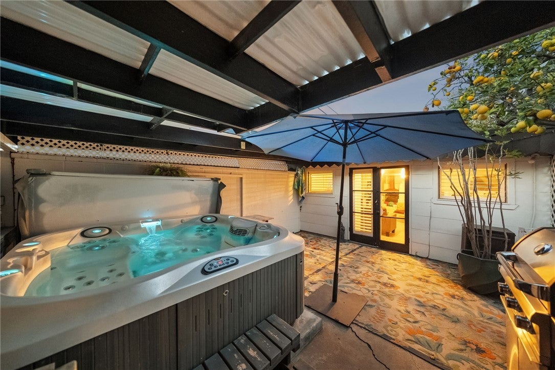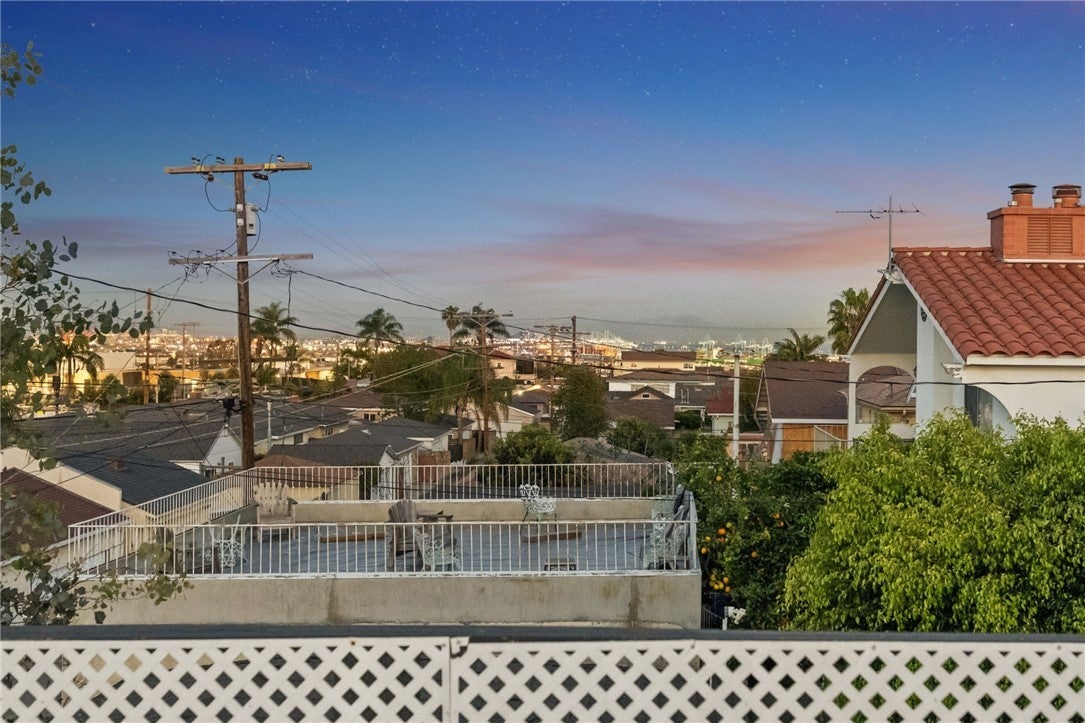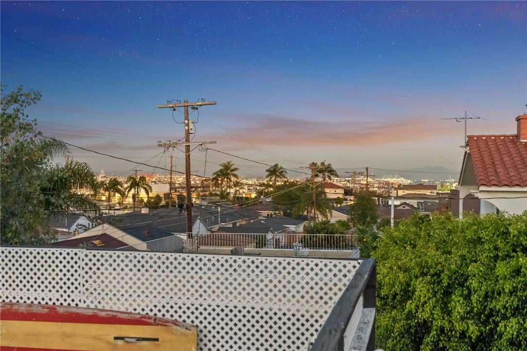 Located in the highly desirable Upper Vista Del Oro neighborhood of San Pedro, this stunning Spanish bungalow blends timeless 1920s charm with modern upgrades and an unmistakable Old Hollywood feel. From the nostalgic character of the front exterior to the private backyard retreat, this home offers a rare combination of warmth, style, and functionality. Featuring 3 bedrooms, 2 bathrooms, and approximately 1,320 square feet of living space, the home showcases original mahogany hardwood floors, crystal doorknobs, and new interior paint throughout. Step into a cozy living room that flows seamlessly into the dining area, creating an inviting space for everyday living and entertaining. The remodeled kitchen and breakfast nook is beautifully appointed with granite countertops, new cabinetry, a modern backsplash, new lighting and upgraded quality appliances including a Viking range, LG refrigerator, and Kenmore dishwasher. The bathrooms have been thoughtfully updated, including a spa-inspired bathroom designed for relaxation. Recent upgrades include a new roof (2024), Anderson windows, updated plumbing (early 2000s), new bathroom lighting, mini-split systems for efficient heating and cooling, solar lease for energy efficiency, a new front retaining wall, and xeriscape landscaping in the rear. Step outside to your private backyard retreat via a mudroom featuring a covered patio with jacuzzi, ambient lighting, and TV — perfect for relaxing or hosting gatherings. Enjoy a chicken coop, mature fruit trees (orange and lemon), private laundry room, and additional basement storage. A detached bonus room with fireplace offers endless possibilities as an office, gym, studio, or creative space. Above the detached garage and workshop, take in city and water/port views from your rooftop balcony — ideal for sunset watching or private sunbathing. (The rooftop deck was previously grandfathered in and is unpermitted.) Located near parks, including walking distance to Averill Park designed by renowned Central Park architect Frederick Law Olmsted, plus close proximity to schools, shopping, UCLA South Bay Campus, the soon-to-be reopened West Harbor Marketplace featuring Yamashiro’s new restaurant, live music venues, Little Italy, and the vibrant downtown arts district. Easy access to major freeways and just minutes from the LA Waterfront complete the lifestyle appeal of this exceptional property.