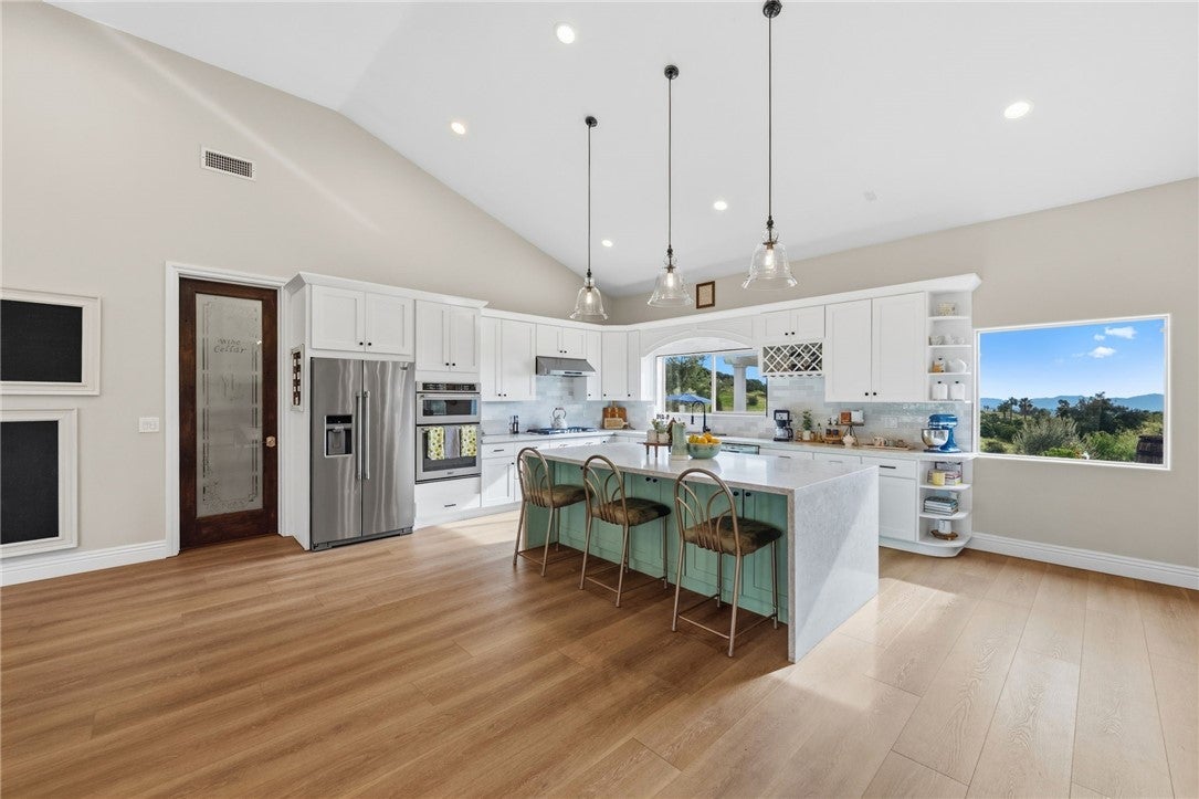 Welcome to a private wine country retreat where beauty, tranquility, and timeless living come together on just over five gated acres in the heart of Temecula’s celebrated vineyard community. Surrounded by sweeping views and open skies, this extraordinary luxury estate invites you to slow down, savor the moment, and live inspired every day. The main residence offers 5 bedrooms and 4 bathrooms, thoughtfully designed with warm engineered wood flooring, classic shaker cabinetry, and elegant quartz countertops that create a refined yet welcoming atmosphere. Sunlit interiors open effortlessly to expansive outdoor living spaces, blending comfort with the natural beauty that defines wine country living. Outside, the estate transforms into a personal resort. A sparkling solar heated pool, outdoor kitchen with built in barbeque and pizza oven, bocce ball court, and playground create endless opportunities for gathering, celebration, and relaxation. A detached office or pool house provides flexibility for work or creative pursuits, while the private 1-bedroom casita offers a peaceful haven for guests and extended stays. Three flourishing vineyards-Chardonnay, Syrah, Albarino and Sangiovese frame the property, offering both scenic chChardonnay, Syrah, Albarino and Sangiovesearm and the romance of vineyard ownership. Just minutes from Temecula’s renowned wineries, fine dining, and entertainment, the home delivers both seclusion and connection. From pool parties to sunset family dinners, this is where memories are made and ultimately legacies left. ADU sqft 944/2nd Outbuilding 155.94sqft