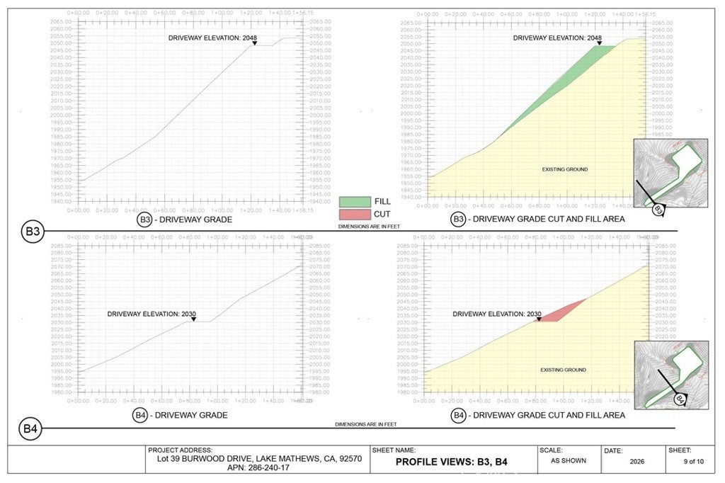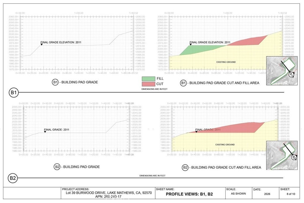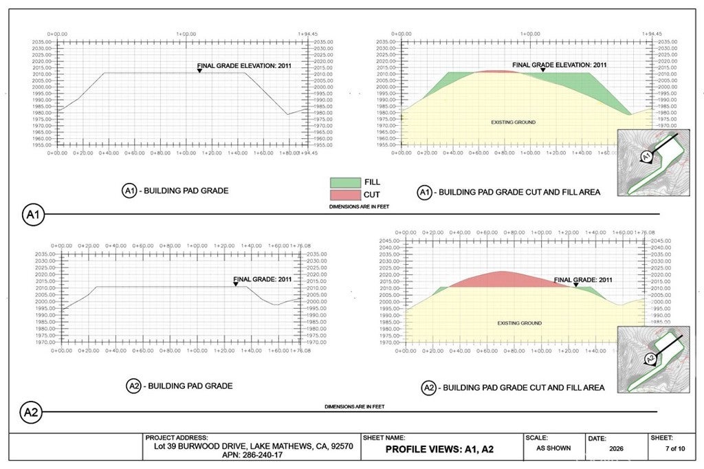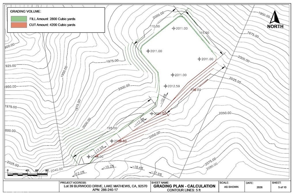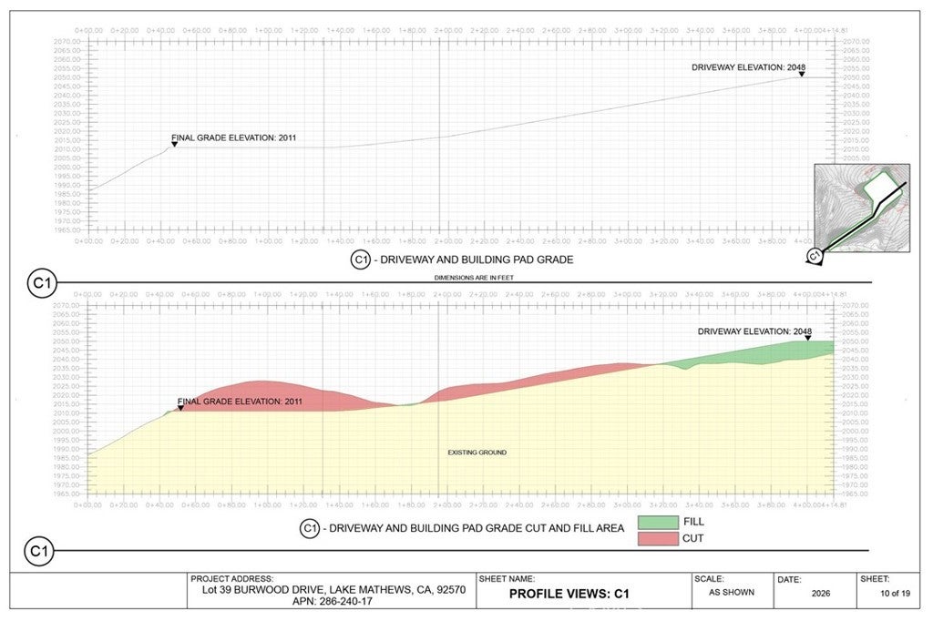 Panoramic Lake Mathews View Estate Land - 5.47 Acres - Development Work Included Welcome to the beautiful Lake Mathews. This is a Prime Lake Mathews land with one of the best lake views in the area. Great opportunity to own a large, 5.47 acre view lot in the heart of Lake Mathews. 180 degree unobstructed panorama lake views. Located on a quiet road, surrounded by newly built custom residencies. This is the largest property on this road. Preliminary engineering grading plans with computer 3D models, calculations and visualizations are included in the purchase. The plans include a 195 feet long driveway, a 115'x110' graded flat pad for a 4000 square feet house and a 4000 square feet garage to store cars, RVs, boats, motorcycles, or any of your toys. No restriction on build type: from luxury mansion through large custom home to a small home, prefabricated homes to mobile homes, Lake Mathews is developer friendly. 3D visualization of the entire land topography, digital models and data files are included with the sale. A second area is available for a second pad that can accommodate a pool and entertainment area, or a horse stable, or an ADU. Keep horses, dogs, or any farm animals, Lake Mathews is a welcoming place for animals. The property is zoned R-A-2-1/2. Plenty of space for your dream home, toys, garage/shop, horses and sports facilities. Shopping center is close by, just 14 minutes away (Target, Kohl's, Best Buy, Petco), Restaurants, Planet Fitness, Banks, REGAL Movie complex, golfing. The property is located in the highly rated Corona-Norco Unified School District, elementary, middle and high schools are top rated. Easy access to the 15 and 91 freeways. This is a peaceful area with low tax rate. This land is a perfect opportunity for a large estate surrounded by preserved land and with 5.47 acres this property offers lasting privacy and unmatched natural beauty. The property includes several acres of gently sloping land between the planned home site and the neighboring property, helping ensure that your lake view remains permanently unobstructed. Enjoy the spectacular views of the lake and mountains.