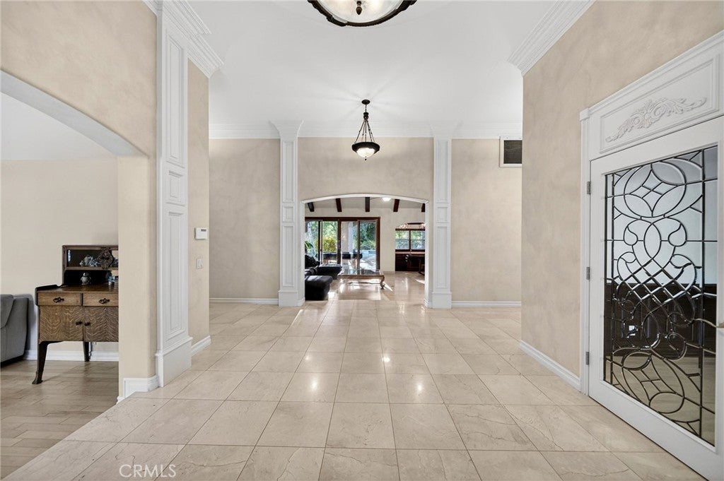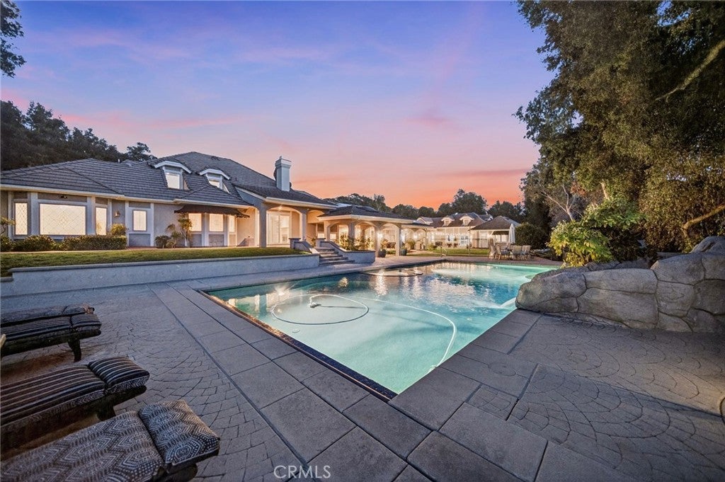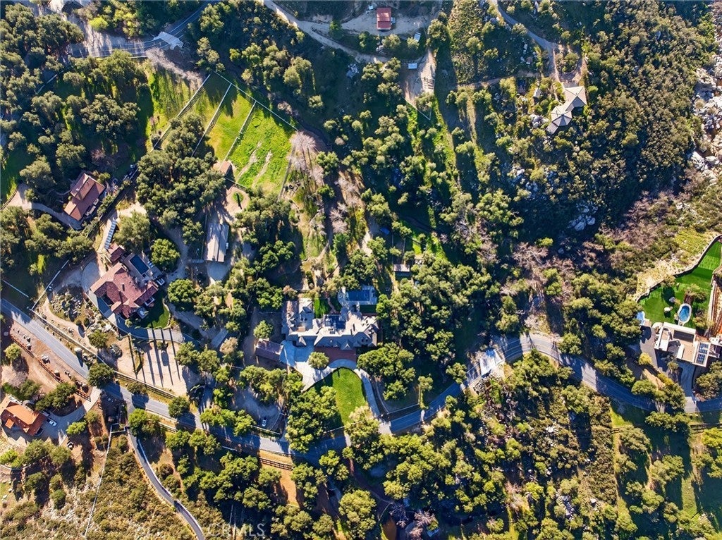Nestled in the coveted La Cresta Highlands community of Murrieta, this extraordinary 4.9-acre estate backs directly to the Cleveland National Forest and is surrounded by multi-million-dollar properties, offering unmatched privacy, serenity, and panoramic natural beauty! The main residence showcases 5 bedrooms and 4½ baths, highlighted by a stunning grand room with soaring ceilings, exposed wood beams, a natural wood-burning fireplace, and a full-size wet bar—seamlessly opening to a true backyard oasis. Designed for entertaining, the resort-style pool and spa feature a custom slide, creating the ultimate gathering space for family and friends! A chef’s kitchen impresses with granite countertops, custom cabinetry, and high-end Viking stainless steel appliances. The spacious primary suite offers a cozy sitting area, fireplace, and picturesque views overlooking the pool and spa. Additional interior features include an upstairs bonus room, a richly appointed library with built-in custom cabinetry, and a large game room with its own wet bar and vaulted wood-beam ceilings—demonstrating quality craftsmanship throughout! The property also includes a turnkey 2-bedroom, 2½-bath guest house, plus a separate 500 sq. ft. 1-bedroom, 1-bath casita—ideal for multi-generational living or extended guests. Car enthusiasts and hobbyists will appreciate the impressive 1,500 sq. ft. detached 6-car garage/workshop! A double-gated circular driveway leads to park-like grounds studded with mature oak trees and a natural creek that runs along the back of the property. Equestrian-ready with corrals, shelters, fenced and cross-fenced areas, plus a tack room with laundry hookups. Equipped with a private well, 5,000-gallon water tank, and 48 paid solar panels for energy efficiency! Peaceful country living just 15 minutes to the I-15 freeway, shopping, dining, and within the award-winning Murrieta school district. An exceptional entertainer’s paradise—don’t miss this rare opportunity!