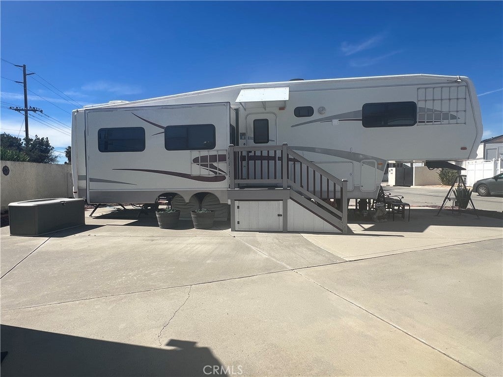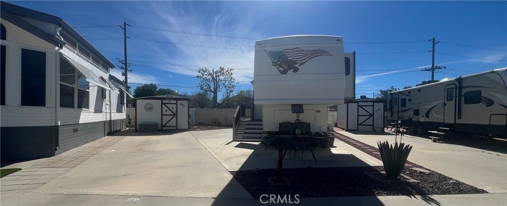 OWN YOUR LAND at a great asking price in the highly desired Mt. Shadows RV Resort, a gated 55+ senior community, featuring a large “A” lot with beautiful mountain views and a well-maintained 2004 CARDINAL fifth wheel included. The sellers lived in the RV year-round, which offers a newer A/C and heating unit, washer and dryer, step-in shower, and abundant cabinetry. The property also includes an oversized, improved storage shed with electricity, built-in cabinets, and a doggy door leading to a private backyard with vinyl fencing, extra tool shed included, plus low-maintenance landscaping, an automatic sprinkler system, and potted plants. Residents enjoy access to two clubhouses, with the second clubhouse just a short distance away and offering amenities such as a heated saltwater pool, spas, billiards room, shuffleboard, picnic and gathering areas, large community kitchens, exercise rooms, restrooms and showers, laundry rooms, horseshoe pit, ping-pong tables, cornhole, and more. The community hosts numerous activities including luncheons, exercise classes, special-occasion dinners, matinees, bingo, karaoke, and additional social events. Conveniently located for commuting to Temecula Wine Country, the mountains, beaches, and just minutes from Diamond Valley Lake, the property also benefits from low taxes and HOA fees of approximately $292, which include water, sewer, trash, basic cable, and internet—resort living at its finest.
