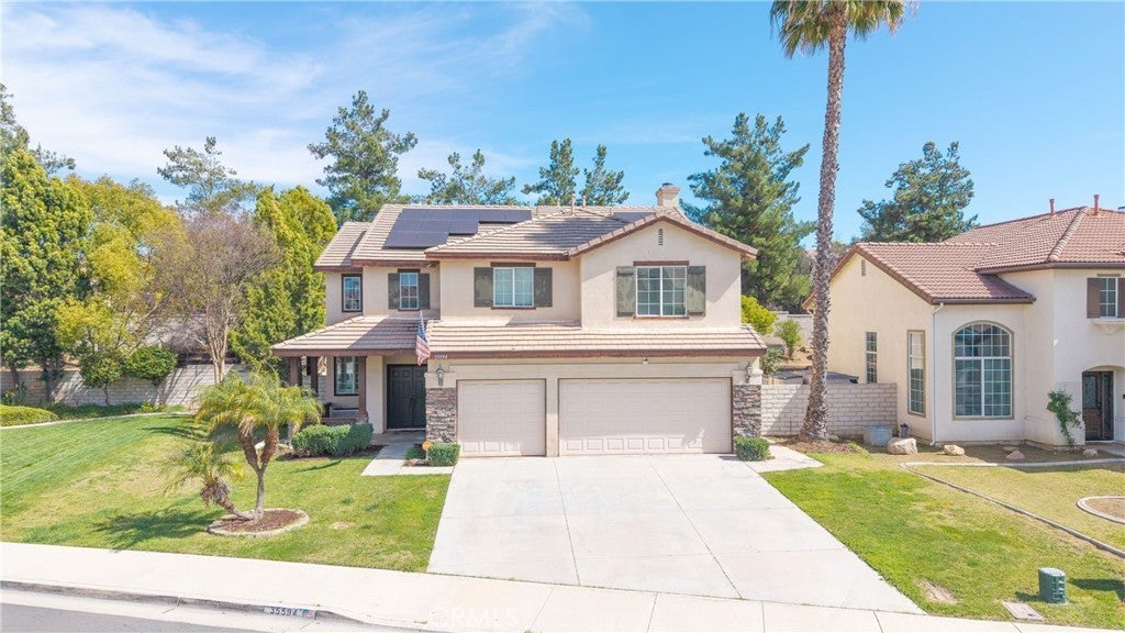 ** Paid-Off Solar ** A residence of rare distinction awaits, an address that commands admiration and a lifestyle that exceeds every expectation. A luxury Pool home tucked at the end of an intimate cul-de-sac, this exceptional home blends architectural elegance with resort-level amenities, creating a private sanctuary unlike anything else in the community. Beyond the front door, sophisticated design unfolds across every room. Rich beautiful upgraded flooring, plush new upstairs carpeting, and timeless plantation shutters set a tone of understated luxury. The gourmet kitchen is a showpiece of modern refinement, showcasing gleaming quartz surfaces, NEW custom cabinetry, a generous walk-in pantry, brand-new stainless appliances, and an integrated tech center designed for today’s connected living. The floorplan flows effortlessly from one impressive space to the next: a dramatic formal living room crowned with soaring cathedral ceilings, a warm and inviting family room anchored by a custom fireplace, and a versatile downstairs bedroom ideal for guests, multigenerational living, mother in-law or a private office. The resort style backyard retreat rivals a boutique resort. A Pebble-Tec pool and spa shimmer beneath the sun, framed by a sculpted rock waterfall, dual awnings, a dedicated entertainment area, and expansive stamped concrete patios designed for unforgettable gatherings. Upstairs, a grand bonus room offers limitless possibilities—an immersive home theater, a game lounge, a studio, or a luxurious 5TH bedroom. Energy-saving PAID OFF solar panels elevate both comfort and efficiency, while generous side yard(s) offer potential RV access (check with HOA) rarely found in homes of this caliber. Perfectly positioned near top-rated schools, premier shopping, and the natural beauty of Diamond Valley Lake, Lake Skinner, and various Winery's, this residence delivers the ultimate blend of luxury, convenience, and lifestyle. Opportunities of this quality are fleeting—experience the home that has everyone talking before it becomes someone else’s dream address. ** Paid-Off Solar **