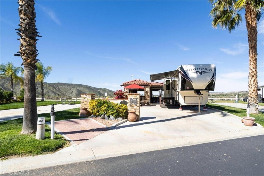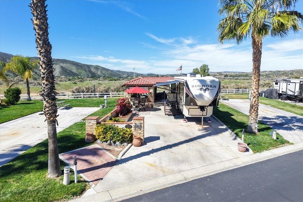 RV lot with mountain and desert views and no rear neighbors located in the guard-gated Rancho California RV Resort near Temecula Wine Country. Property improvements include a gorgeous build-out with full electric screens, Gorgeous unobstructed Sunsets, interior drapes, built-in TV cabinet, and additional screen awnings overlooking the open desert area. Outdoor features include extra seating area, large concrete RV pad suitable for larger coaches, golf cart parking with privacy wall, & raised garden planter box. All furniture inside build-out to be included in purchase price. Rancho California RV Resort amenities include 14-hole Executive Par 3 golf course (owner use included), 5 pools and spa areas, tennis courts, pickleball courts, dog park, clubhouses, hiking trails, horseshoe lawn, and onsite market. Monthly HOA includes water, sewer, trash service at lot, common area maintenance, and use of resort amenities including the golf course. Guard-gated community with no age restrictions. Financing available....