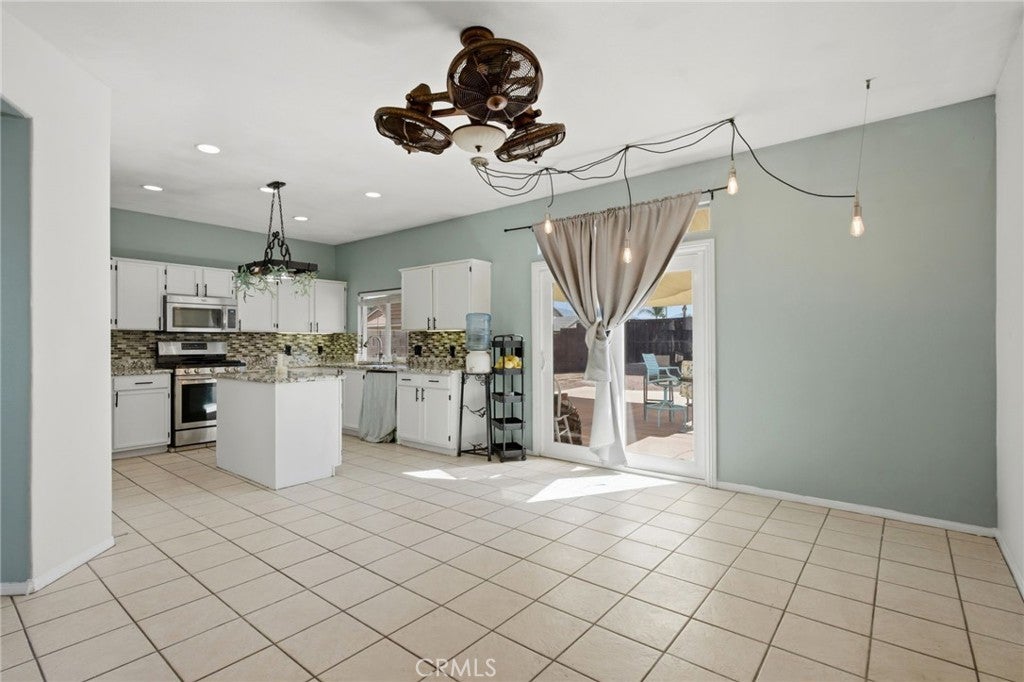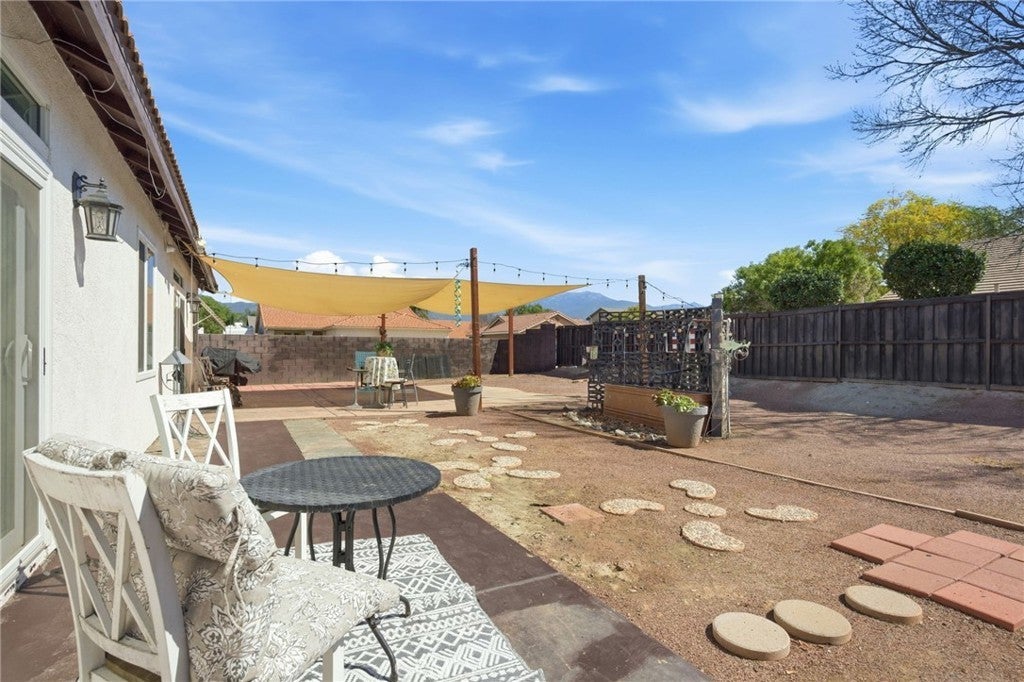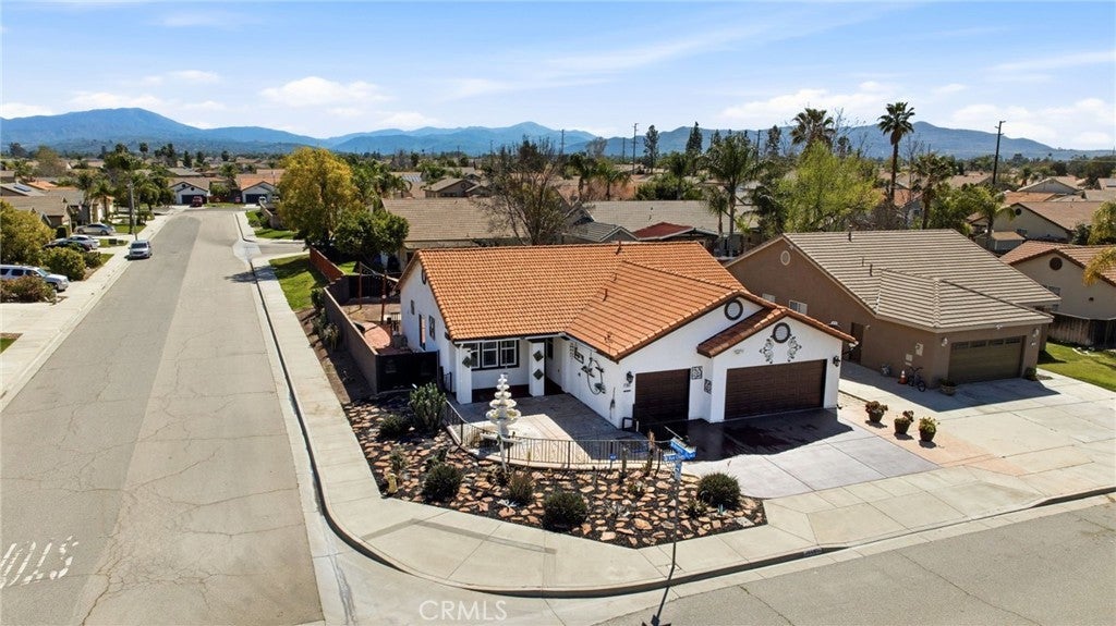 DRAMATIC MOUNTAIN VIEWS WITH LOW PROPERTY TAXES!! This exciting east-valley home is an absolute gem! Located on the eastern edge of San Jacinto city limits, you'll love the larger corner lot. You're just a stone's throw from the vast expanse of the Soboba Indian Reservation reaching all the way to the foothills. Walking up you'll love the gated stamped & stained concrete patio, putting out relaxing vibes from the peaceful flowing fountain. Entering from the front porch, you walk into a large formal combo living/dining room that is light and bright. The living room is large enough for a formal sitting area, game room, or even a pool table. Continuing on back, you enter the spacious family room. Plenty of room for the whole family to hang out. Adjacent is the wide open kitchen featuring upgraded stone counters, mosaic tile backsplash, and deep pantry. Heading down the hall, you'll have plenty of storage in the linen closet. The two guest bedrooms, pass-through office bedroom, and full bathroom are all central to the home. Toward the back you find the extra wide primary bedroom suite. Accordingly, there is ample room in the primary bath and walk in closet. Out the sliding glass door, you'll find that the back yard is spacious with room for several seating areas. There is plenty of room for grilling and entertaining. On the side of the property you have a hidden side yard that affords extra storage and possible RV parking with modification. Additionally, you'll have plenty of room in your huge three-car garage with work bench. Located on the desirable east side of the valley, this home is a commuter's dream by being conveniently located near Ramona Expy for direct access to freeways, Soboba Casino Resort, and beyond. Don't let this beautiful home pass you by!
