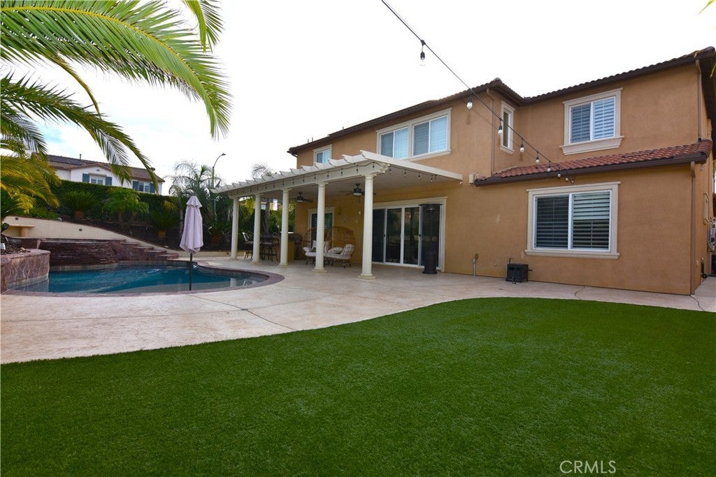 Experience everyday luxury in this stunning Morgan Heights home, ideally situated on a peaceful cul-de-sac and positioned on an expansive 9,147 sq ft corner lot, offering exceptional privacy and breathtaking mountain and sunset views. Offering 3,794 sq ft, the thoughtfully designed floor plan features plush carpeting and luxury vinyl flooring throughout, and a highly desirable downstairs secondary suite with its own en suite bathroom and walk-in closet, providing the ideal setup for guests or multi-generational living. The chef’s kitchen is designed to impress, showcasing quartz countertops, a large center island, stainless steel appliances, abundant cabinetry, and an open flow that makes both everyday living and entertaining effortless. Upstairs, the elegant primary suite offers dual walk-in closets, a relaxing soaking tub, and a separate shower, creating a private retreat. Step outside to a resort-style backyard designed for both relaxation and entertaining. Enjoy a sparkling saltwater pool and spa, a covered patio, a built-in BBQ island, low-maintenance artificial turf, and lush landscaping. For added convenience, landscape and pool service are included. The garage is equipped with ample overhead storage racks and 240V outlets, including a ready-to-use Porsche electric vehicle charger. Additional upgrades include a water softener system and energy-efficient solar through Access Solar for $150 per month. Located within close proximity to top-rated schools, award-winning wineries, and premier shopping, dining, and entertainment, this home perfectly balances convenience with tranquility and offers the perfect blend of comfort, luxury, and lifestyle. Don’t miss this great opportunity!!