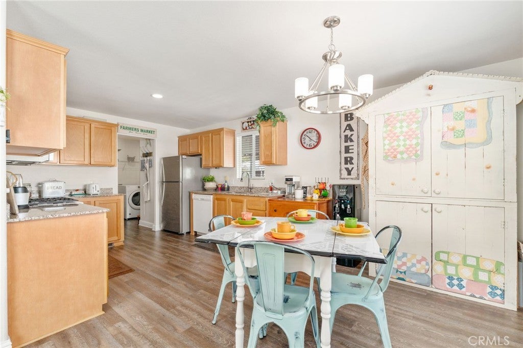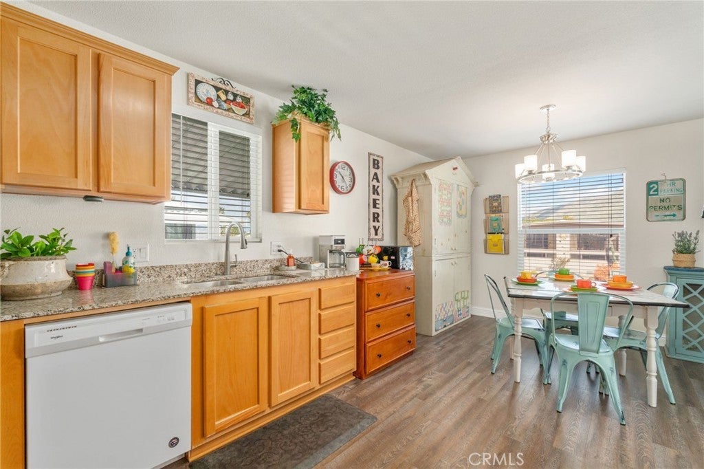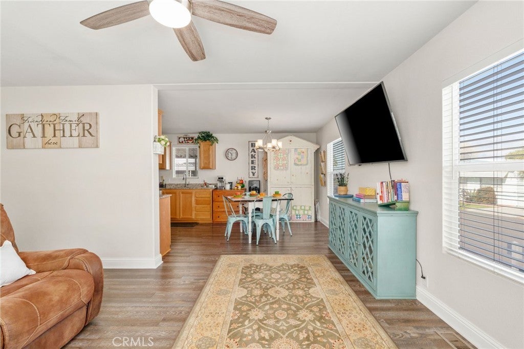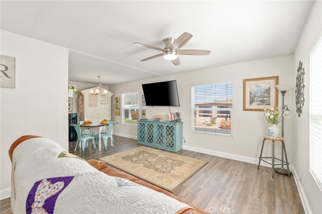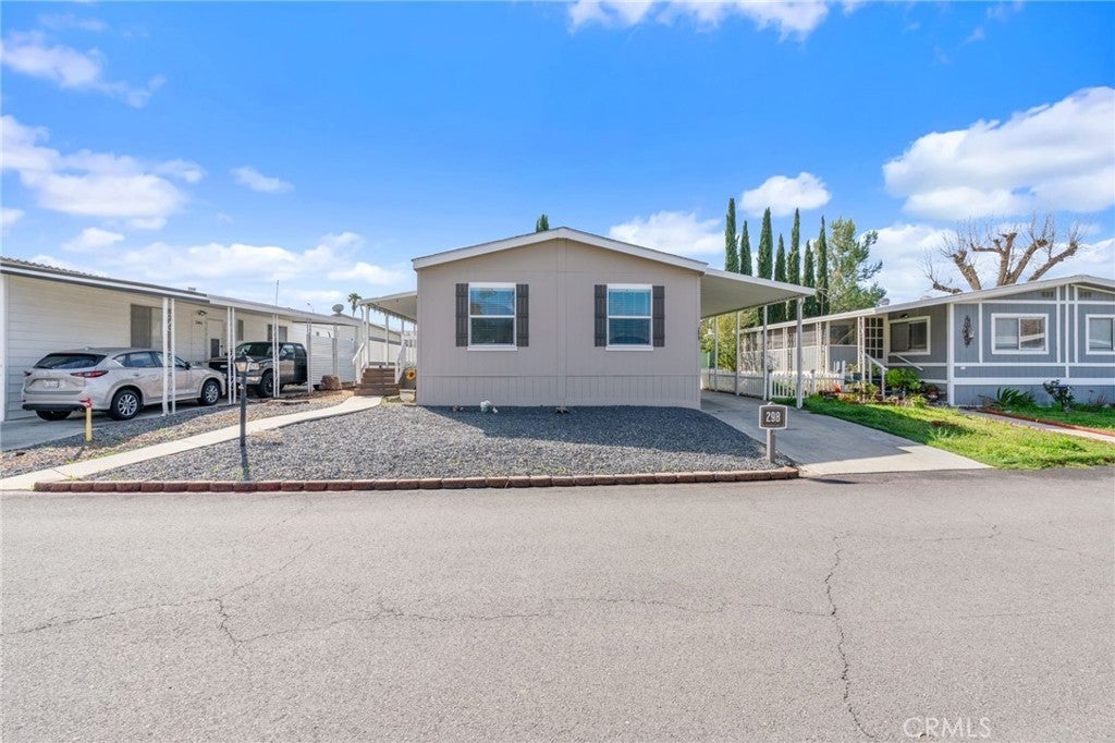 Welcome to this charming 3-bedroom, 2-bathroom home with an optional den, located in the highly sought-after 55+ Country Lake Mobile Home Community in San Jacinto. As you approach, admire the beautifully finished 8' x 31' deck with mesmerizing mountain views—perfect for lounging. Inside, you'll find newer vinyl flooring throughout, including inside the closets and modern nickel finishes on faucets, light fixtures, and fans. Enjoy light, bright spaces with stunning mountain views throughout each front window. The large deck offers serene views, and a newer shed is included for extra storage. The community features fantastic amenities such as a sparkling pool, jacuzzi, an activity center with a pool table and card tables. Breathtaking lake views, a walking trail with over 350 trees, adorable water fountain and bridge, dog park, horseshoe pit, community clubhouse, shuffleboards, and two fishing docks. RV storage is available for low rent. The photos truly don’t do it justice—come take a look!