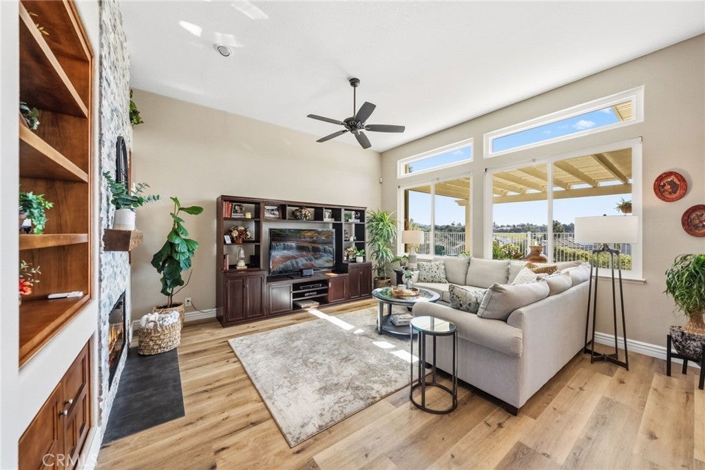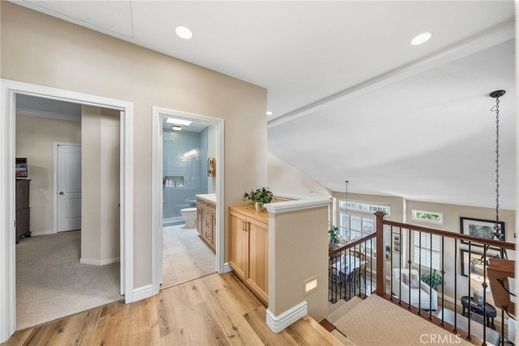 Welcome to this beautifully upgraded 4-bedroom, 2.5-bath home in the sought-after Summerwalk community in Carlsbad. Offering a stunning view and exceptional indoor-outdoor living, this home features a built-in barbecue, inviting hardscape with firepit, and thoughtfully designed landscaping perfect for entertaining. Inside, newer luxury vinyl plank flooring flows throughout the main living areas, complementing the remodeled kitchen with rich cherrywood cabinetry, a striking copper sink, wine refrigerator, and updated appliances. The bathrooms have been tastefully remodeled with white oak cabinetry, and the spacious main-floor primary suite offers a beautifully updated ensuite bath and French doors for seamless backyard access. Shutters accent the formal living and dining rooms, while the upstairs includes three secondary bedrooms with plush carpeting. Major improvements include a newer roof, extensive window replacement, updated furnace and ducting, refreshed exterior paint, updated fireplace and staircase, and enhanced lighting throughout. Residents enjoy access to two community pools and clubhouse room rental amenities, all within close proximity to top-rated schools including Mission Estancia Elementary School, Diegueño Middle School, and La Costa Canyon High School, consistently recognized for strong academic performance. This is an exceptional opportunity to own a move-in ready home in one of Carlsbad’s most desirable neighborhoods.