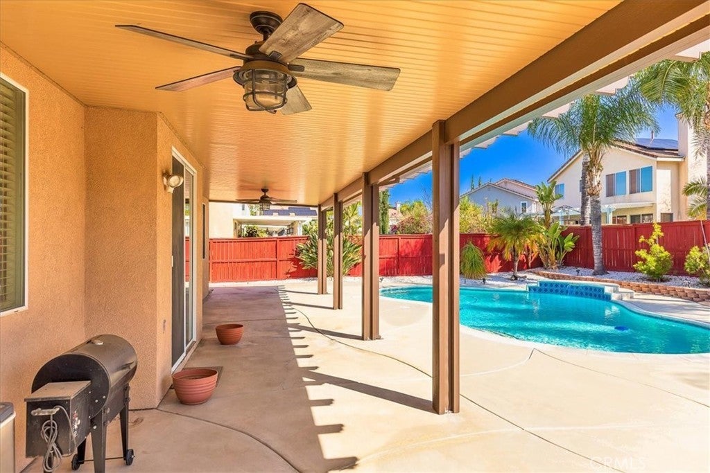 Nearly 3,000 sq. ft. of spacious living in this beautifully maintained 4-bedroom, 3-bath home located in a desirable Temecula Valley neighborhood. The inviting double-door entry opens to attractive living and dining areas with soaring ceilings and numerous windows that create a light, bright, and airy atmosphere throughout. The open-concept family room with cozy fireplace adjoins the well-appointed kitchen featuring stainless steel appliances, granite countertops, center island, walk-in pantry, and convenient computer workspace. A downstairs bedroom and full bath provide ideal accommodations for guests or multi-generational living. Upstairs, enjoy a HUGE bonus room perfect for a game room, media room, or additional living space. The spacious primary suite offers abundant closet space and an adjoining bath with dual basins, plenty of counter space, a walk-in shower, and separate soaking tub. Step outside to your private backyard oasis situated on a large lot with a sparkling pool, Alumawood-covered patio, and additional patio space perfect for entertaining large gatherings of family and friends. A charming covered front porch adds to the home’s welcoming curb appeal. Located in the top-rated Temecula school district and within walking distance to Susan La Vorgna elementary school and neighborhood park. Low tax area with very low HOA dues. Just minutes from world-class wineries, Pechanga Resort Casino, Lake Skinner, premier golf courses, Promenade Temecula, fine dining, and convenient freeway access. Enjoy resort-style living every day in this friendly, welcoming community—live like you're on vacation! You've found the perfect home.