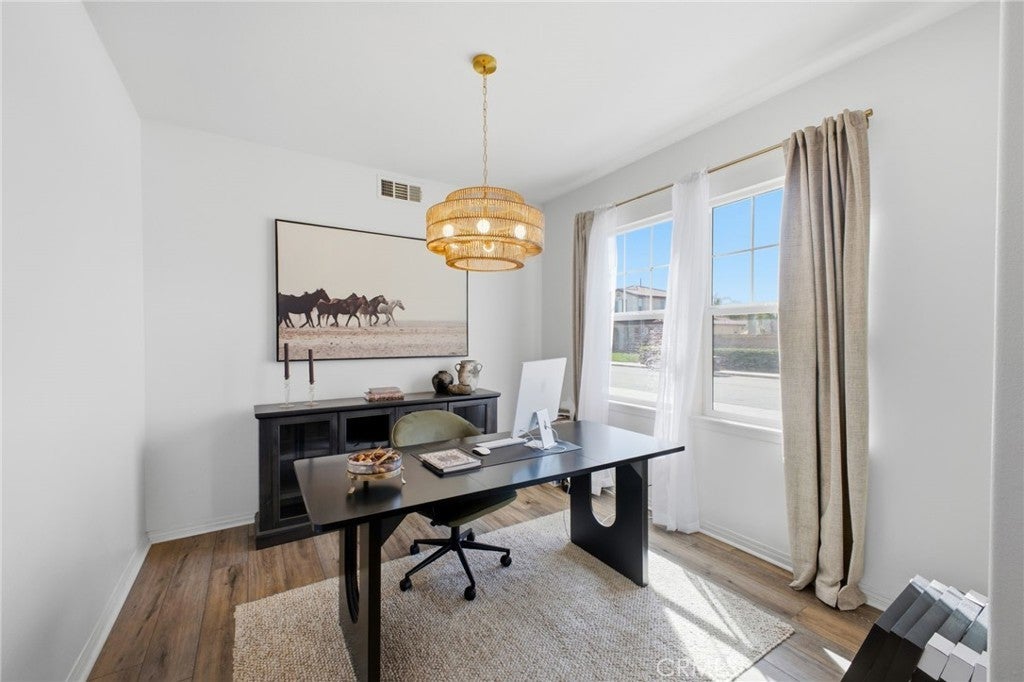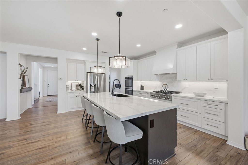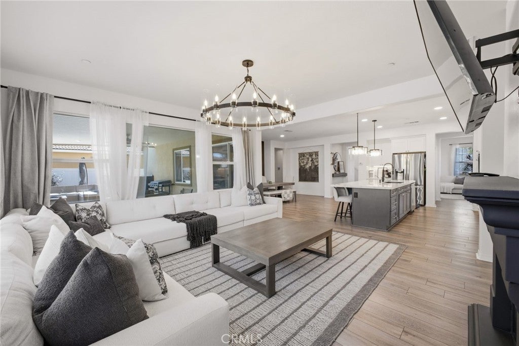 Welcome to this beautifully UPGRADED 5-bedroom home with over 3,000 sqft of living space, shows like a MODEL home located in the highly sought-after TEMECULA SCHOOL DISTRICT. From the moment you walk in, you'll notice the pride of ownership and modern farmhouse feel that makes this home truly stand out. The fully RENOVATED KITCHEN is the heart of the home, featuring a stunning six-burner stove, upgraded cabinetry, modern finishes, and designer light fixtures, making it perfect for cooking, entertaining, and everyday living. The home is enhanced with vinyl plank flooring throughout, creating a clean, cohesive, and contemporary feel. Upstairs, you'll find a spacious loft area that works perfectly as a second living space, game room, or home office. The generous layout offers plenty of room for families of all sizes while maintaining a comfortable and functional flow. Step outside to a fully landscaped front and backyard, complete with artificial turf and a covered patio, creating the perfect setting for outdoor entertaining or relaxing evenings at home. Additional highlights include a THREE-car tandem garage, providing ample parking and storage space, and a location just minutes from Temecula’s shopping, dining, and everyday conveniences. Homes that combine space, style, upgrades, and location like this don’t come around often. This one truly shows like a model and is ready for its next owner to enjoy.