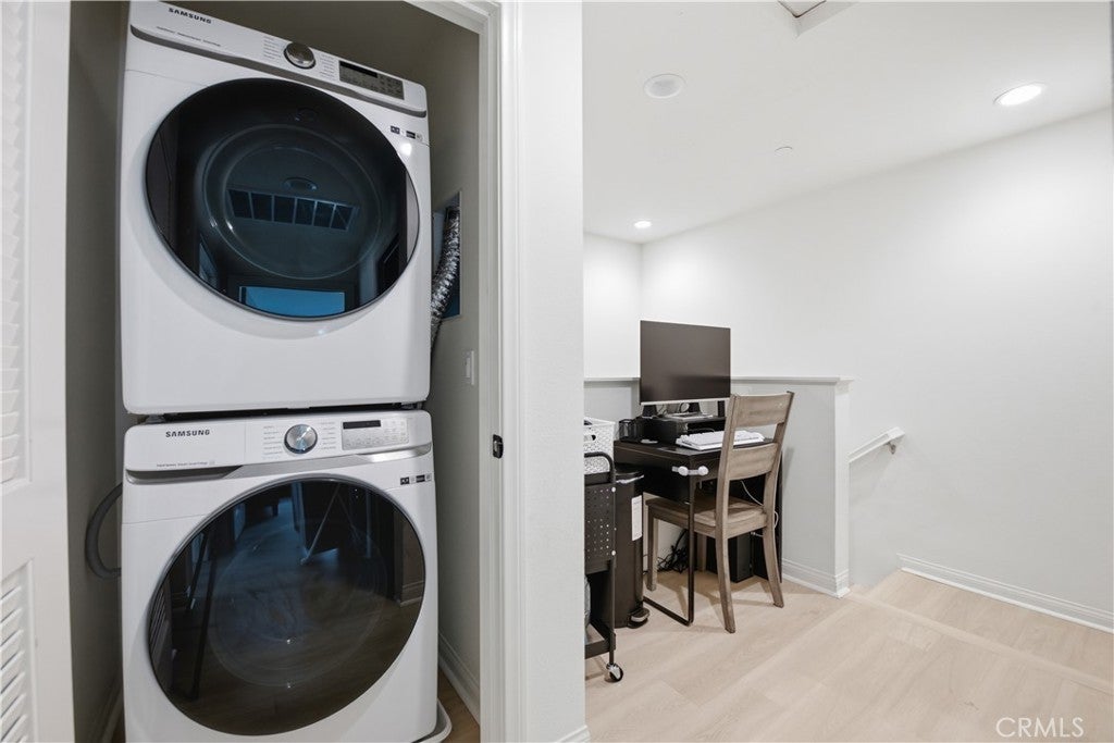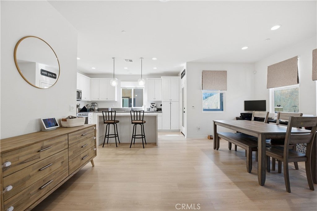 Tri-level Home in the Mission Villas community of San Marcos offers 3 bedrooms, 3 bathrooms, and approximately 1,331 square feet of modern living space. Home features paid off solar and Ev charger. The second-floor main living area features an open kitchen with quartz countertops, a center island, and included appliances including refrigerator, range, microwave, and dishwasher. The living area provides access to a private balcony and offers abundant natural light. Interior features include recessed lighting and wood flooring. All three bedrooms are located on the third floor along with the laundry area with washer and dryer for added convenience. The primary suite includes a walk-in closet. Additional features include paid solar, eco-friendly thermostats, and an attached two-car garage equipped with an EV charger and overhead storage racks. Conveniently located near shopping, dining, parks, Kaiser medical offices, and with easy access to Highway 78.