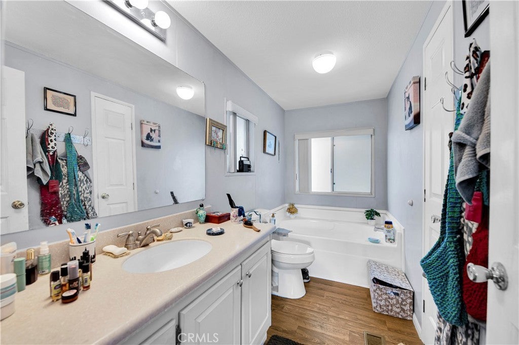If you are looking for one the nicest homes in east Hemet, here it is A rare 3 bedroom in a 55+ neighborhood, The large master has enough room for that king size bedroom and still has room. A nice size master bath attached. The living room is just outside the master and the kitchen. The kitchen has a lot of open counter space and tons of storage. It also has enough room for a big table with 4 to 6 chairs. The 2 bedroom is being used as the library and is much larger then most other 2nd bedrooms. The 3rd bedroom is the guest room and both 2 and 3rd bedroom have the best mountain views. This community is very peaceful. The grounds are so well taken care of. you will love just walking around. A lot of fun activity all week long. Don't pass up the chance to visit this home.