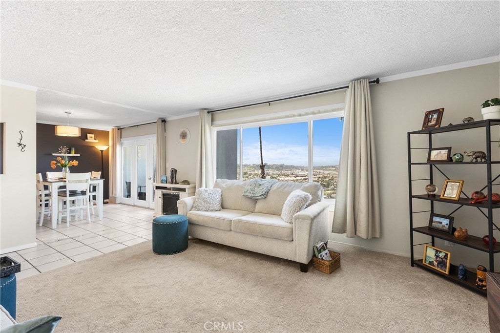 Wonderful views of the valley from this single story 2 bed 2 bath 1177 sq. ft. condo with No Stairs in the 55+community of Oceana Real.This unit is on the same level as the parking and lobby, perfect for the easy living you have earned. Nice open floor plan that maximizes the incredible view from the living areas. New carpet in the living room and primary bedroom for comfort. Enjoy your morning coffee and later an refreshment while watching the sunset on your private balcony, you will have a great view. The dining room has plenty of room for guests and also a counter top bar. The large primary bedroom and bath has a beautiful upgraded shower and counter top, also a nice lighted closet.The hall bathroom has a stackable laundry unit for added convenience. The development provides gated covered parking with extra storage. There is a nice community pool and spa complete with tables and a BBQ area. Showers in the his and hers bathrooms as well. Use the Clubhouse for get togethers with family or your new friends. The Oceana features resort style living in one of the best locations. Feel the cool breeze of the Pacific while being close to shopping, restaurants, and local entertainment.