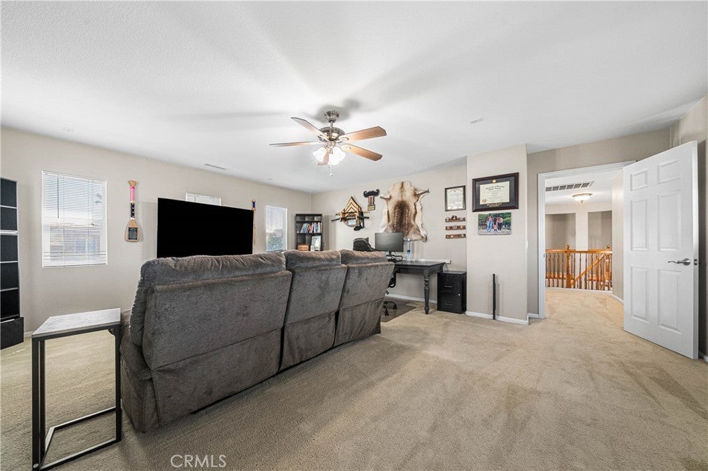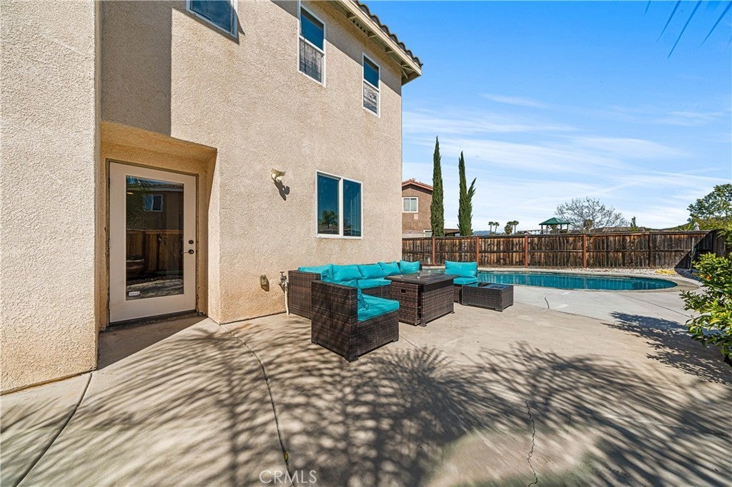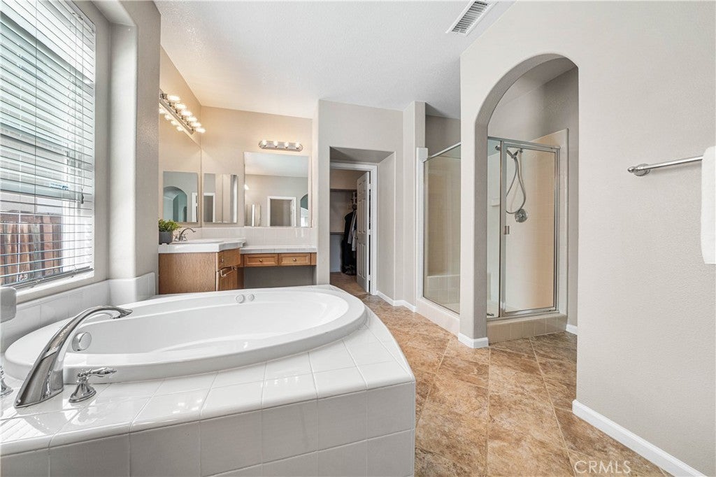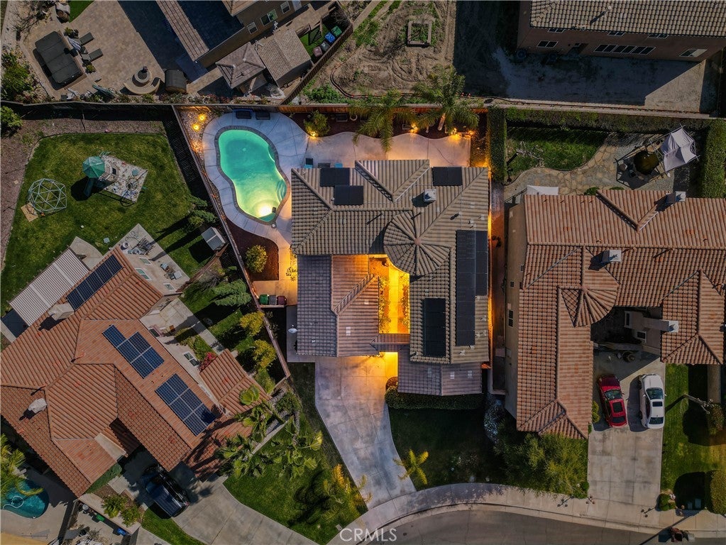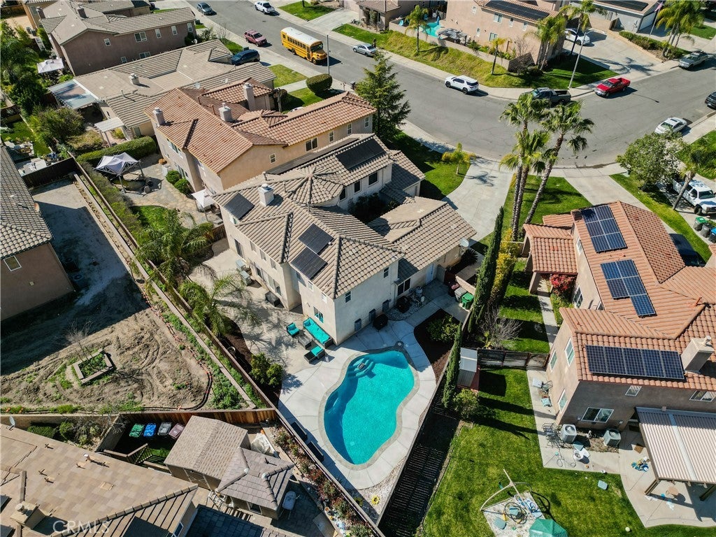 POOL HOME | MAIN-LEVEL PRIMARY SUITE | 3-CAR GARAGE Located on a cul-de-sac, this 4-bedroom home offers approximately 2,822 sq ft with a main-level primary suite, bonus room, heated pool, and solar. The primary suite includes a retreat with fireplace, jetted soaking tub, separate vanity areas, large walk-in shower, large walk-in closet, and a sliding door to the backyard. The kitchen features an island, granite counters, maple-finish cabinets, stainless steel appliances, and opens to the family room with fireplace and cathedral ceilings. A formal dining room, downstairs laundry room, additional guest bath, sweeping staircase entry, and private gated front courtyard add to the layout. Upstairs includes a bonus room with door, one secondary bedroom with en suite bath, and two additional bedrooms connected by a Jack-and-Jill bath. Additional features include a newer A/C and furnace, new water heater, tile roof, and direct access to both the 2-car and separate 1-car garage bays. The backyard includes a heated in-ground pool and low-maintenance landscaping. Located in the Temecula Valley Unified School District and near Abelia Sports Park.