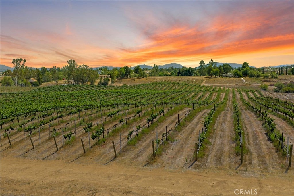 This vineyard is one of the best available sites for a custom home or winery that is available in the Temecula Wine Country. Zoned "Wine Country - WC", with a mature vineyare, existing water meter, fire hydrants located in the street, electricity available adjacent to the parcel - this will be the perfect parcel for your Winery area project. The topography is beautiful and gentle, and will require very little grading for a home or winery location. The vineyard covers approximately 17.5 acres and contains the following varietals: Cabernet Sauvignon, Cabernet Franc, Merlot, Malbec, Sauvignon Blanc, Semillon, and Grenache. The irrigation system has recently been replaced, and is in excellent condition. Water Meter is included, located across Berenda Road from Wilson Creek Vineyards.